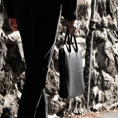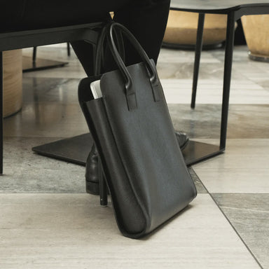 Purposeful design, made to last. The Leather Business Tote in Black pairs minimalist proportions with subtle detailing — rounded edges, piped handl...