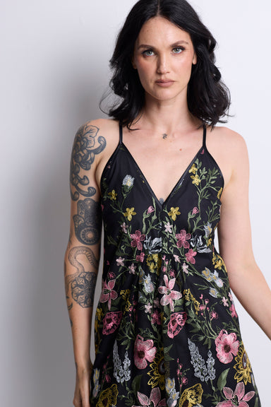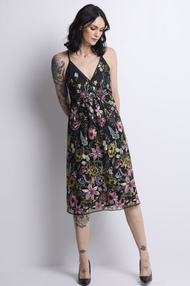 Style: Cut from a one-of-a-kind embroidered mesh lace and lined in a silky satin. An elegant V-Neck dress with an elasticated waist to give shape a...