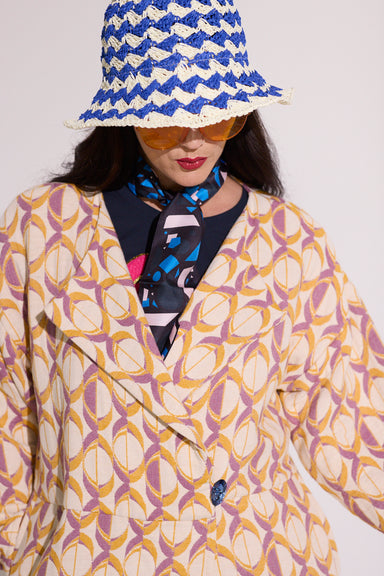 Style: Cropped unlined lightweight linen tweed jacket. With a 3/4 sleeve and velvet trimmed pockets, cut from a unique soft summer stripe cloth. Fa...