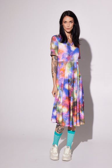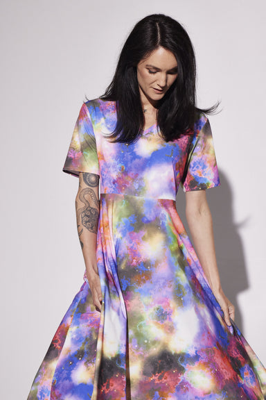 Style: Relaxed, v-neck, short sleeved smock dress, made shapeless for easy wear. Throw on during the warmer months our layer as it cools down. Fabr...