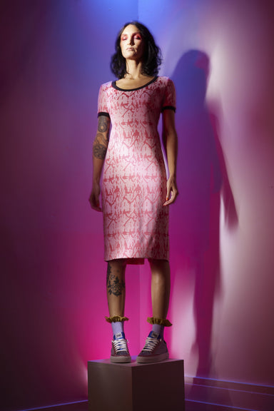 Style: Dress up T-Shirt with an abstract painterly print in bright pink tones on a slinky stretch cotton base cloth. Fabric: Cotton Stretch Fit: Sl...