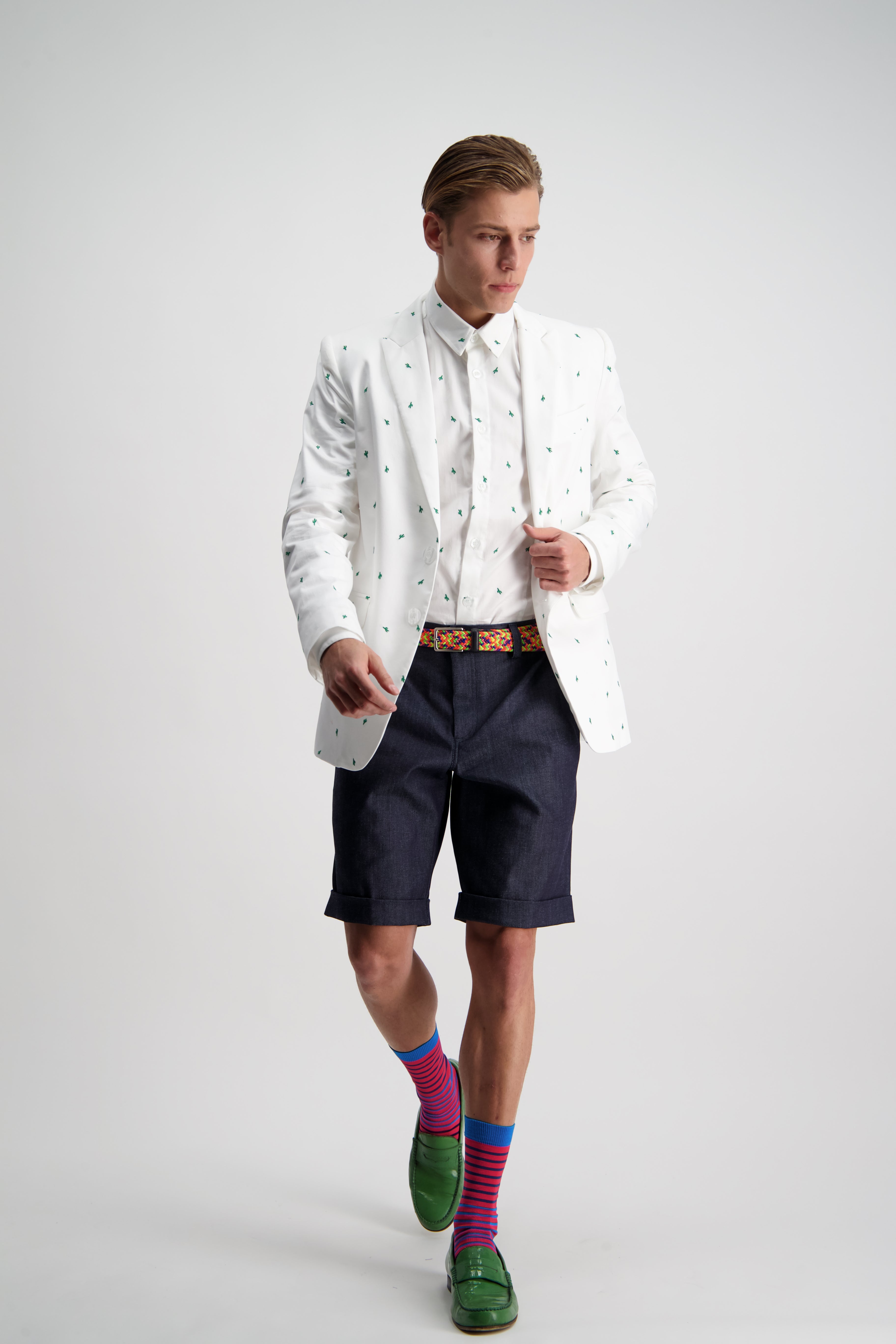 Cut from a tough stretch denim twill, that makes a suit with the Travolta Blazer in Denim for a tough preppy summer look.