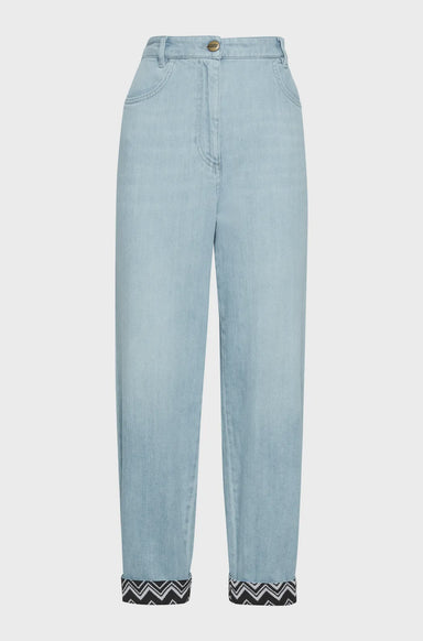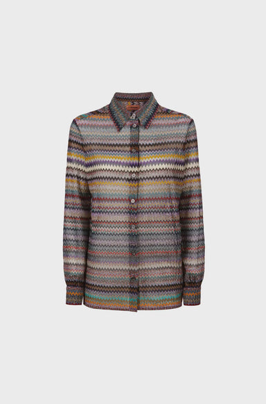 The women’s denim overshirt is transformed, under the Missoni touch, into a refined outerwear for the day-to-night look. The embroidery that recall...