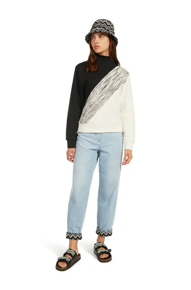 The unmistakable Missoni chevron motif runs through the torso of the women’s long-sleeved crew-neck pullover. The piece, made of pure viscose, acqu...