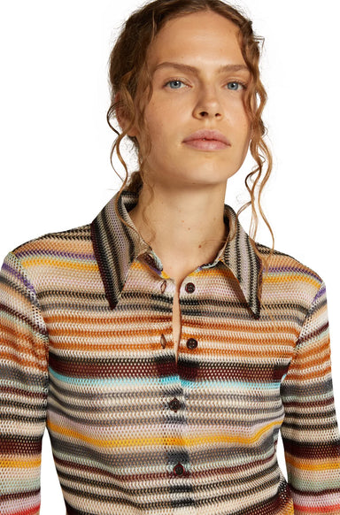 It is a rainbow of femininity and style that seems to come to life on the colourful texture of the women's lightweight knit shirt with long sleeves...