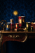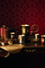 Crafted with care and a unique savoir-faire, the colourful glasses – blue for Fir – are adorned with gold leaf on the inside: shining through by transparency, a halo of golden beams surrounds a metalised Trudon emblem.