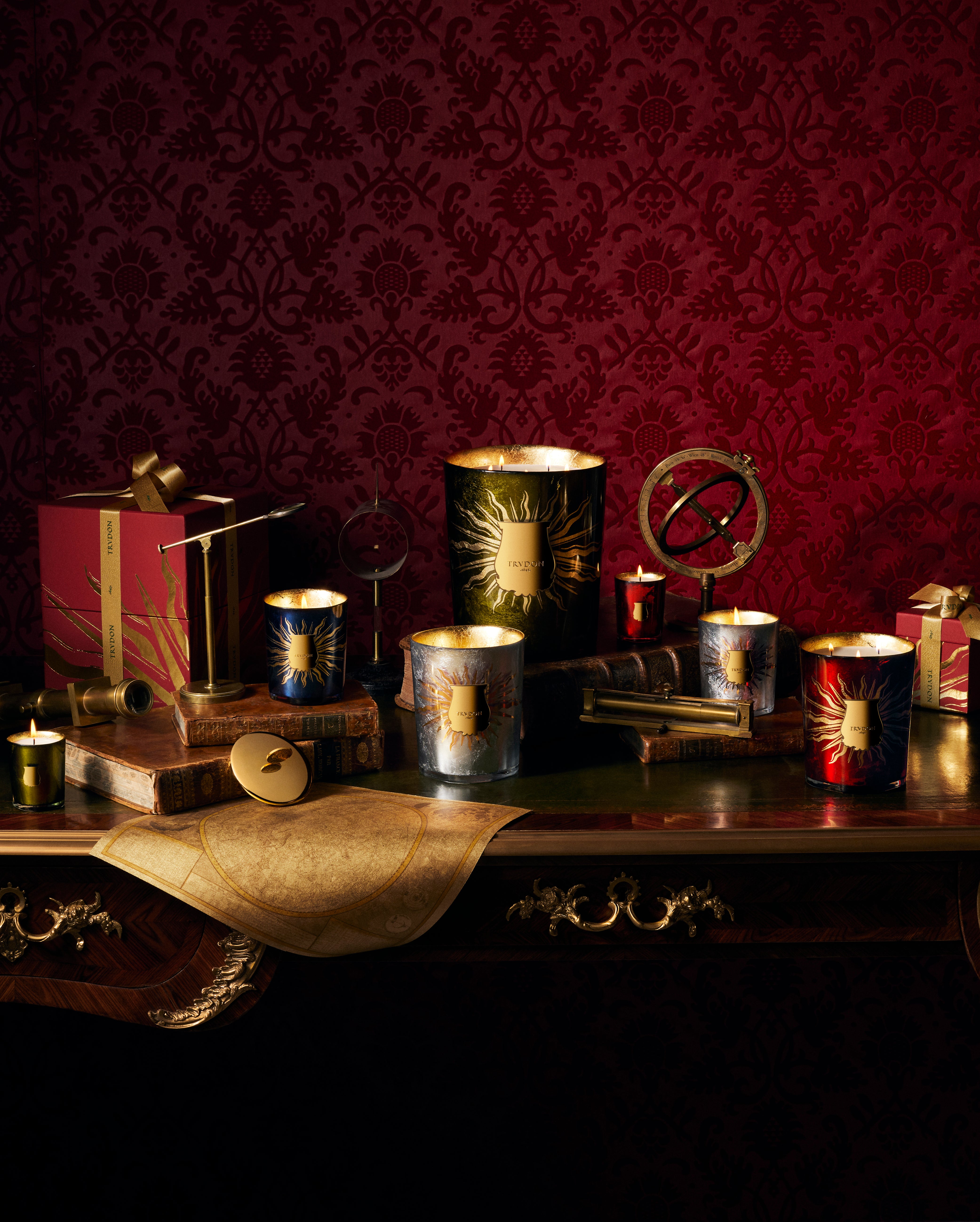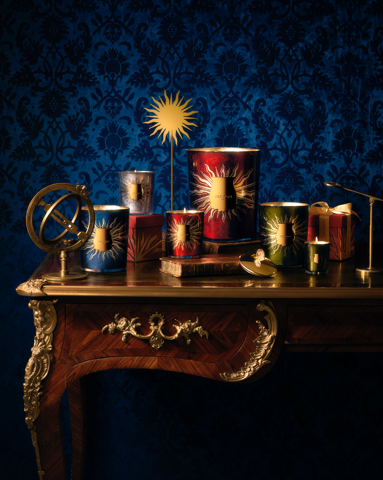 Composed of four distinctive perfumes, each scented candle shines bold, glorified with golden rays that echo both the solar power of the Sun King and the rising importance of astronomy as a science.