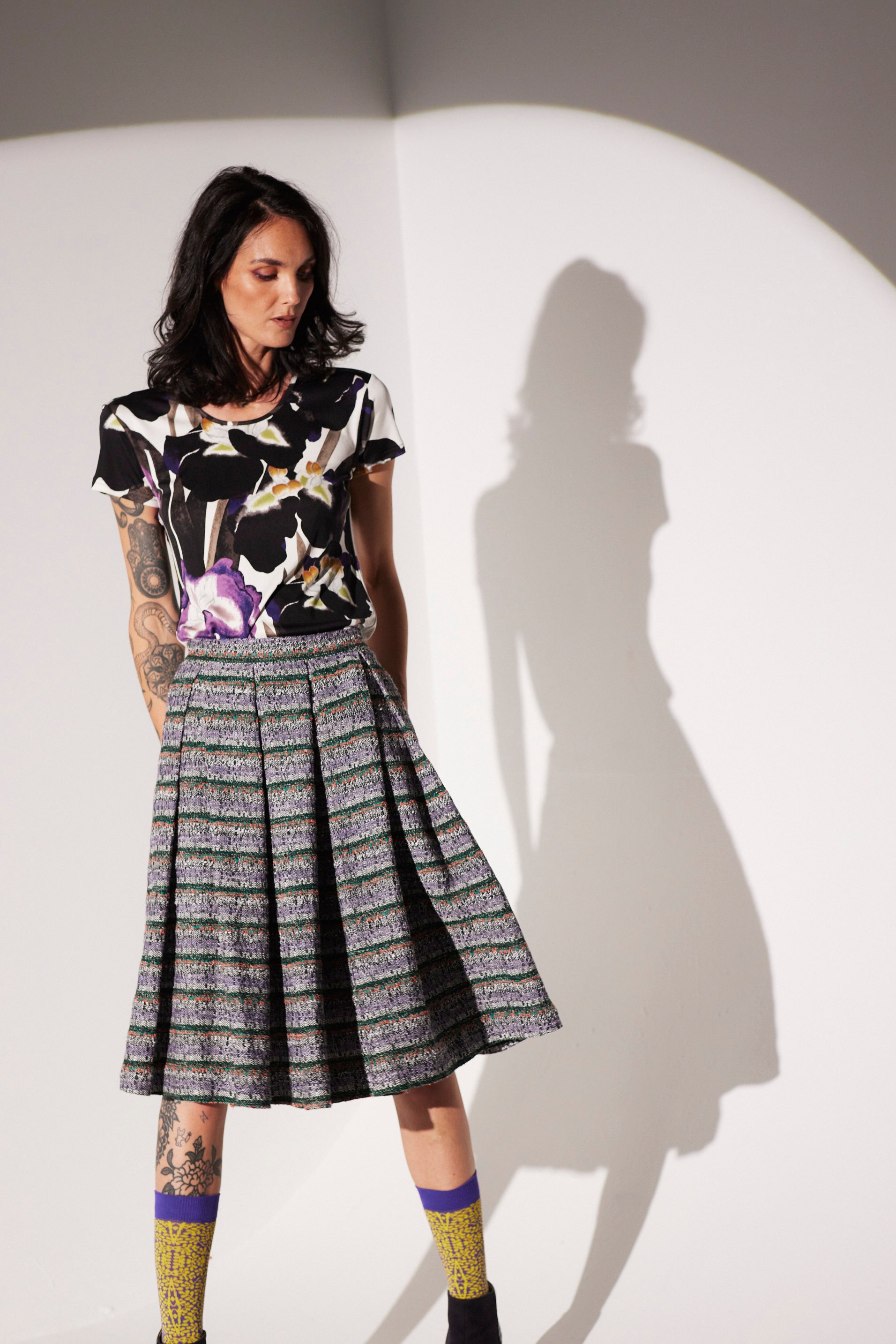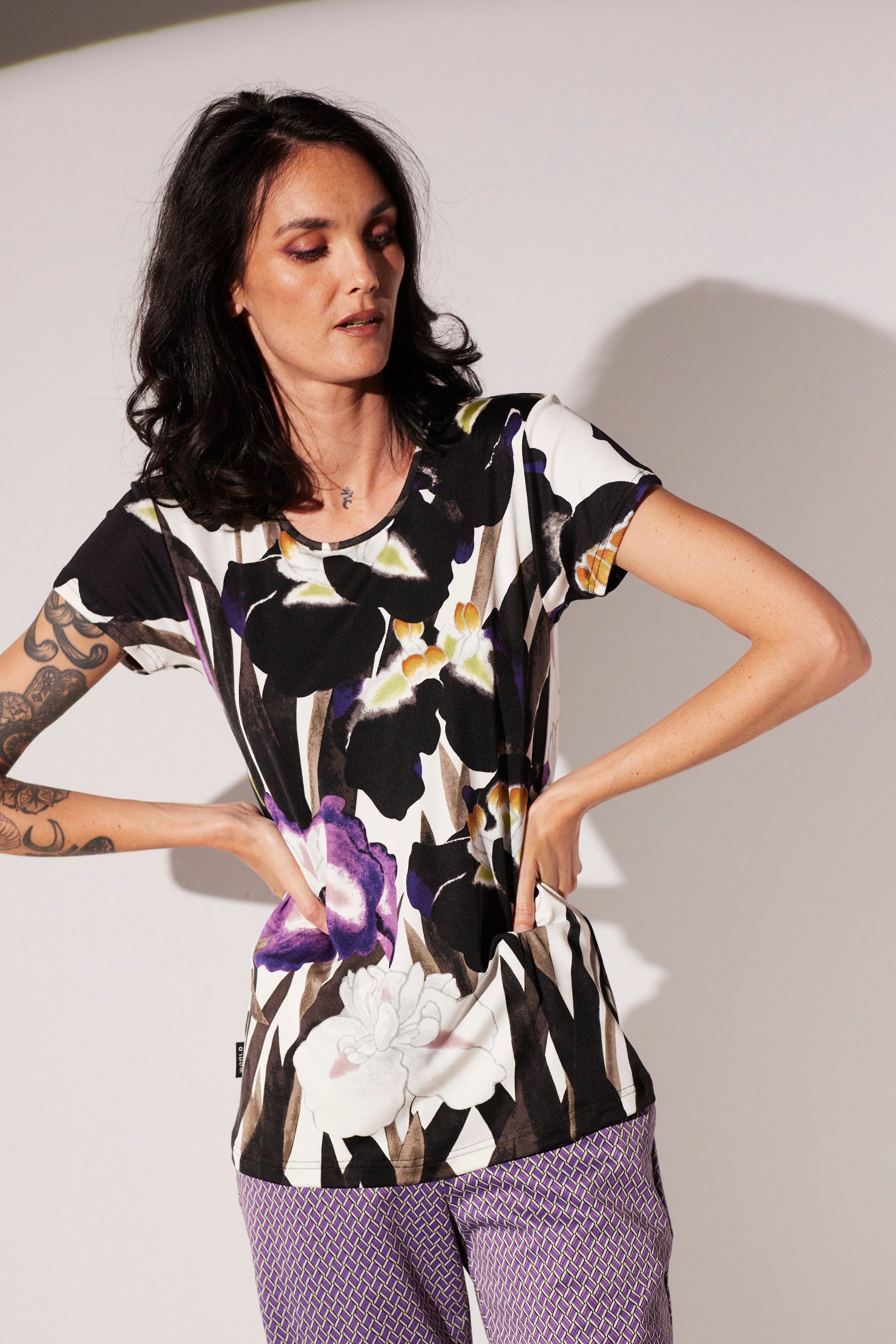 Style: Dress up T-Shirt in a slinky silk knit printed in a water colour floral