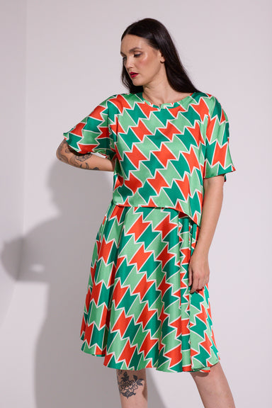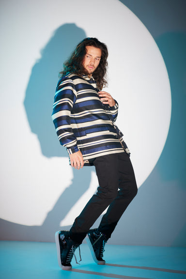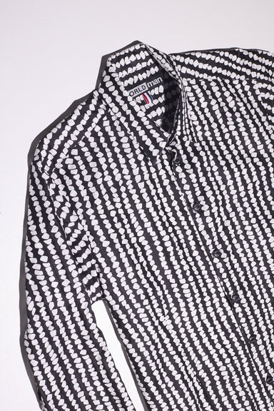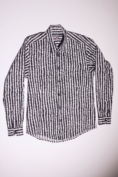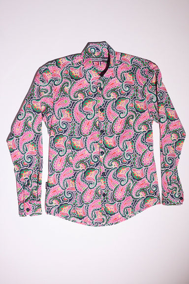 Style: Classic dress shirt, tailored with front and back darts in a bold bright colourful abstract silk stretch shirting Fabric: Silk Lycra Fit: ...