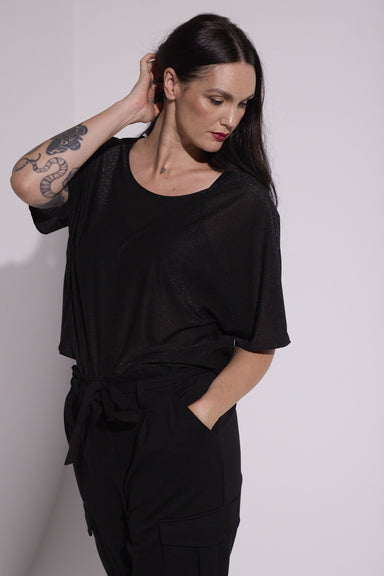 Style: Relaxed fit, crew neck t-shirt slightly shortened and in only two sizes as designed to wear loose and draping Fabric: Sequin Poly Fit: Easy ...