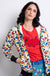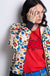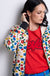 Style: Slouched and relaxed hoodie for everyone! A dressed up, zip-up hoodie with front patch pockets cut from a bright soft cloth with a folk art floral