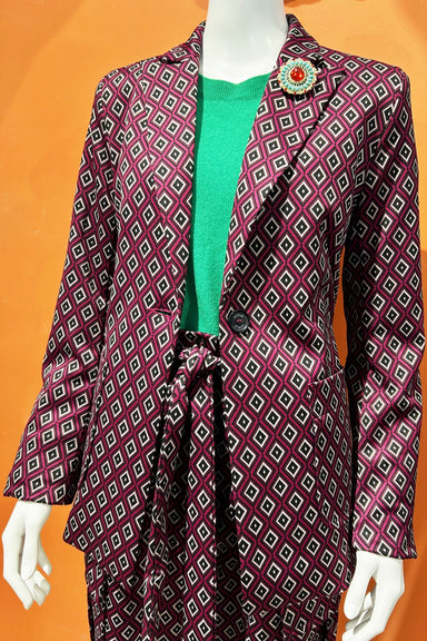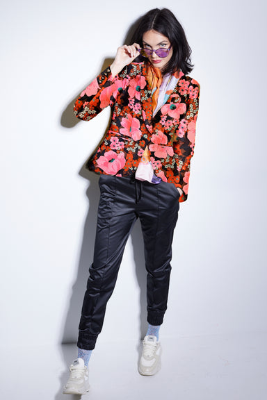 LIMITED EDITION OF 12Formal fun...a tailored and elegant styled cropped blazer with a shawl lapel cut from a rich and textural brocade with bright ...