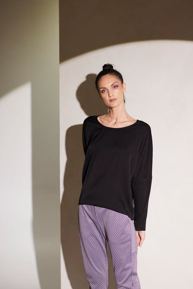 Style: Relaxed fit, crew neck long sleeve t-shirt slightly shortened and in only two sizes as designed to wear loose and draping Fabric: Polyester ...