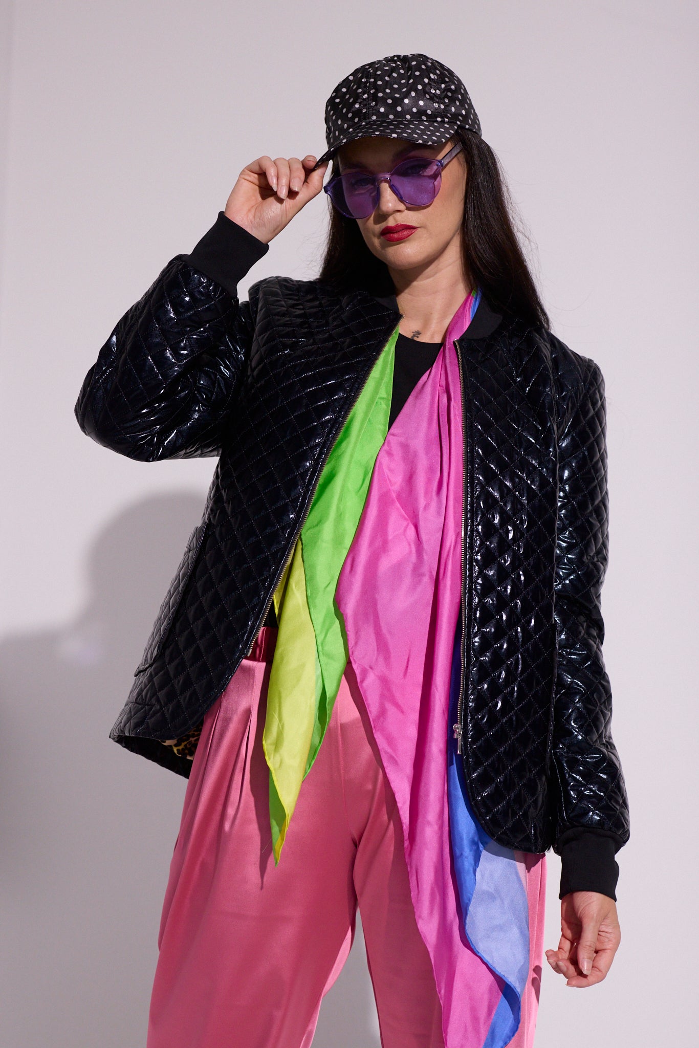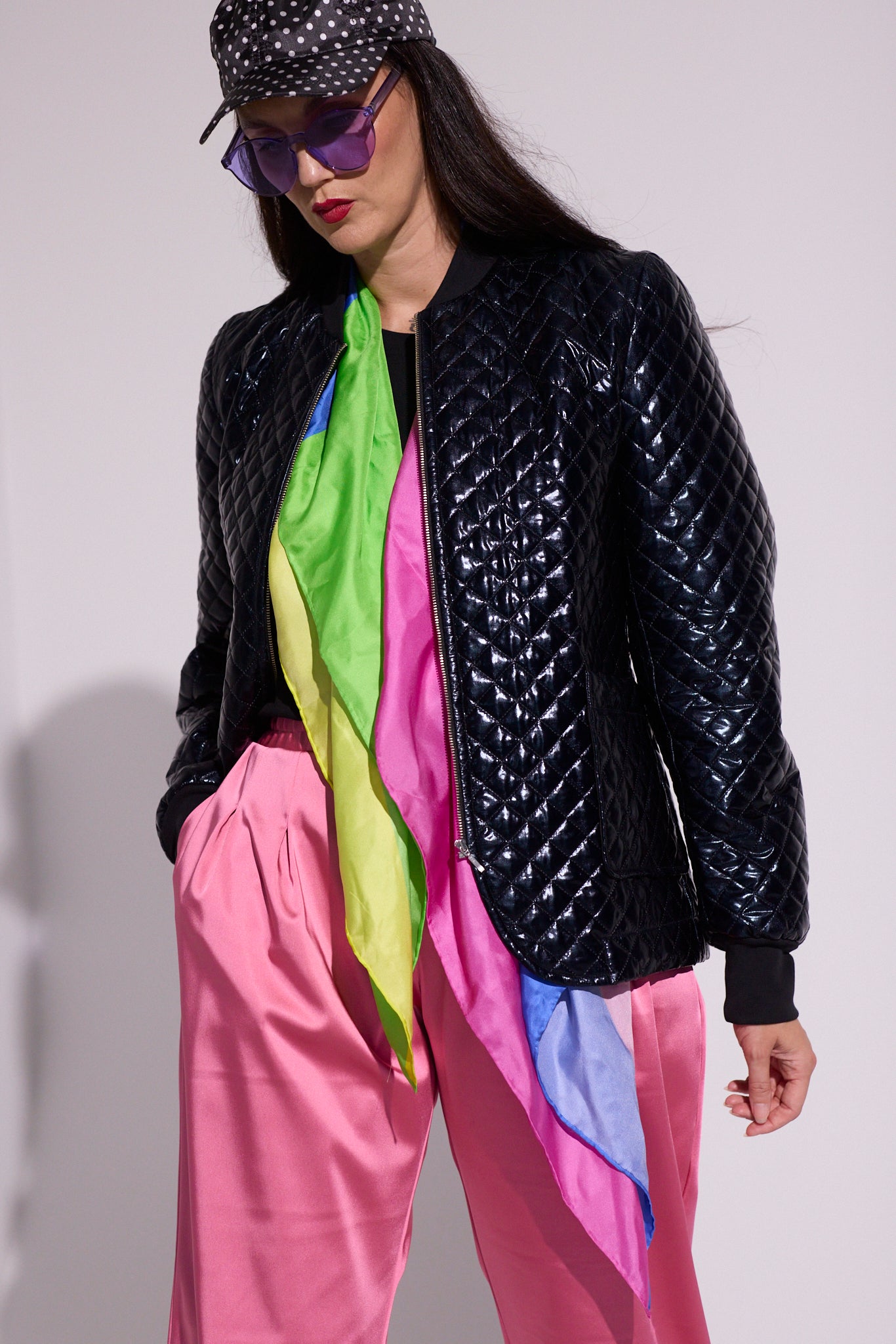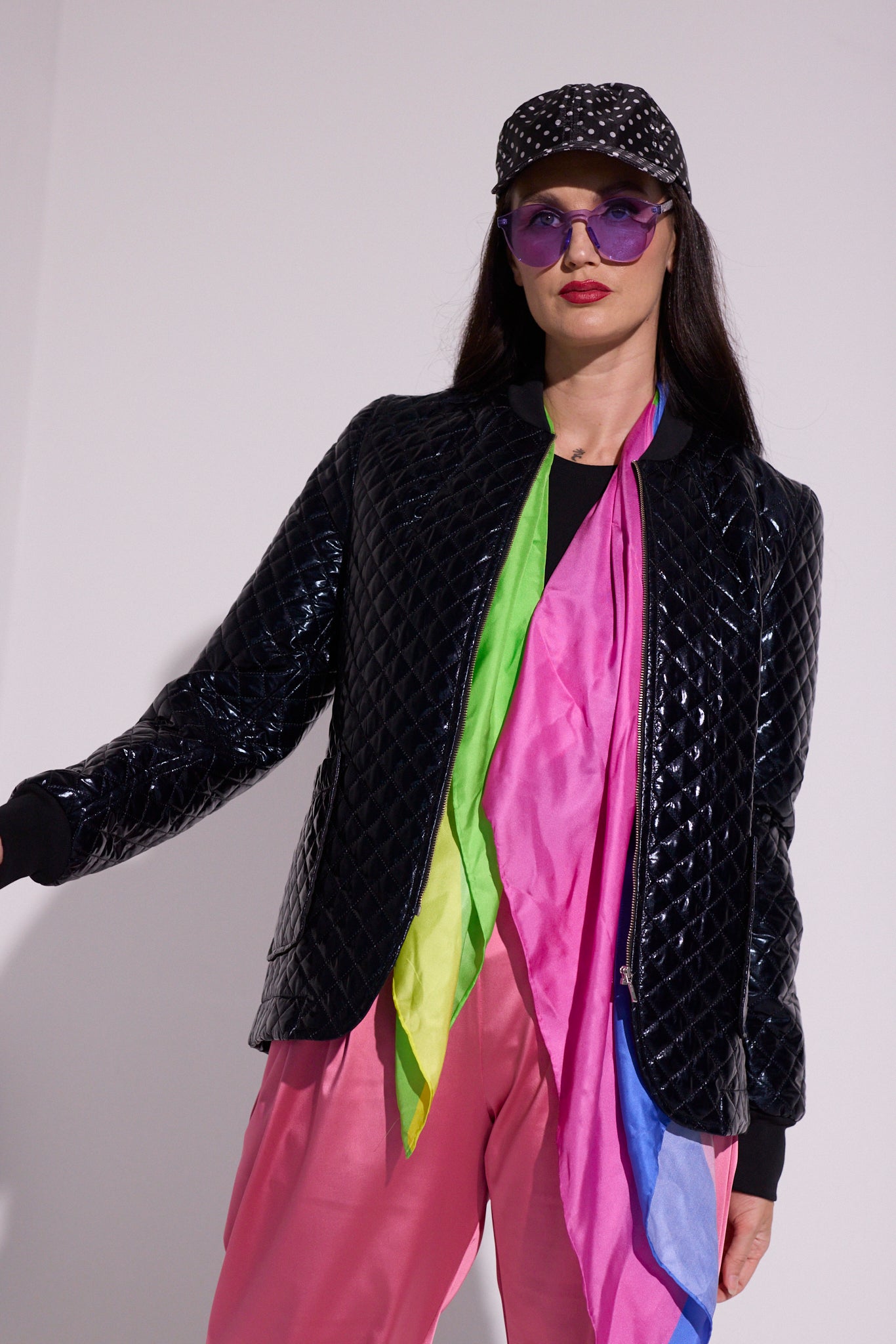 Fabric: Quilted polyester with Satin Lining and Cotton Spandex Rib