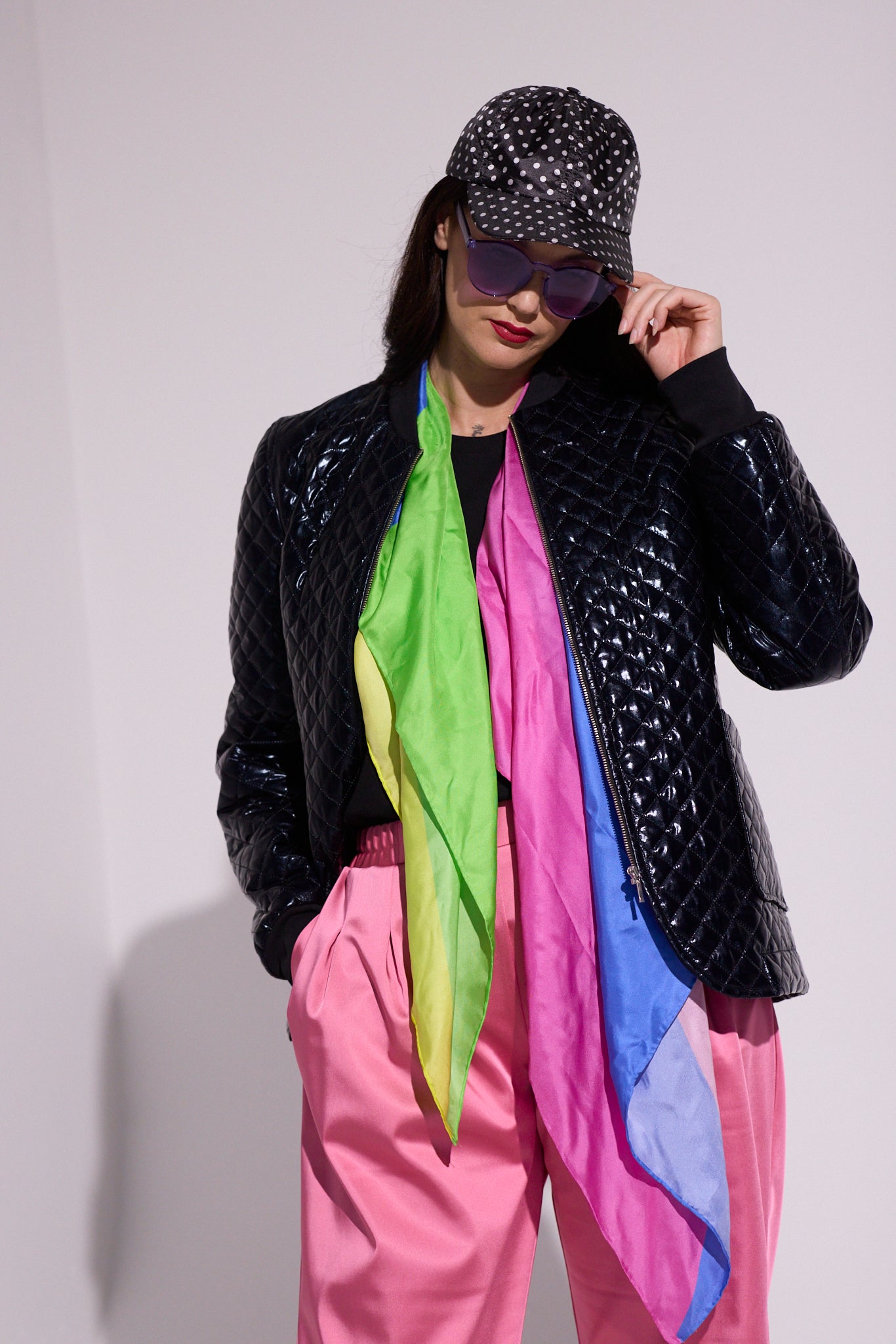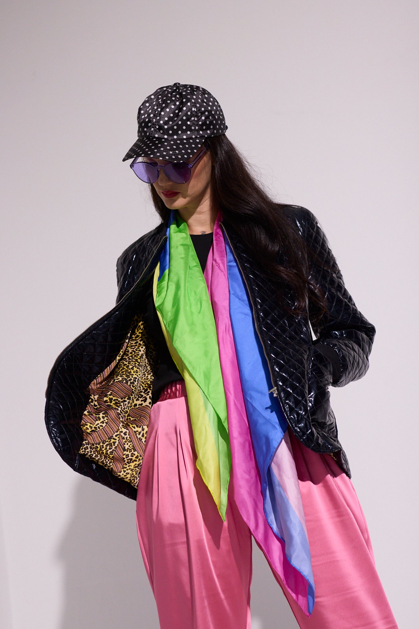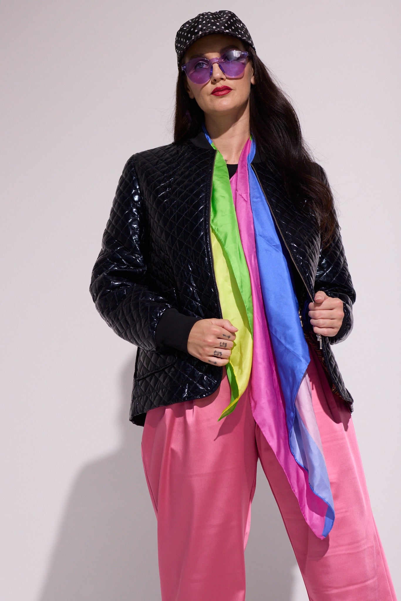 Fabric: Quilted polyester with Satin Lining and Cotton Spandex Rib