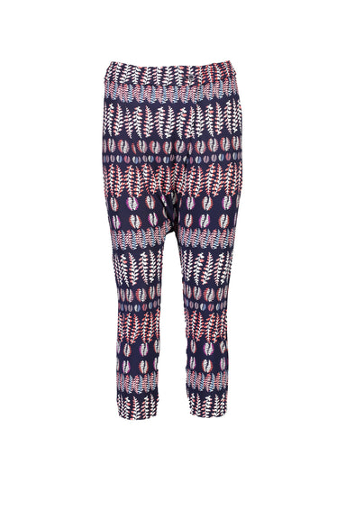 A slim straight leg trouser in a detailed jacquard fabrication based in a navy with a detailed fern pattern with oranges and reds and silvers.Creat...