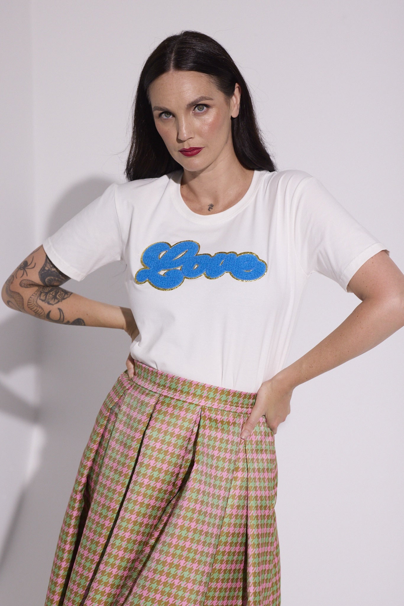 WORLD 5065 Love T-Shirt Ivory w/ Furry Love in Blue (UNISEX)
