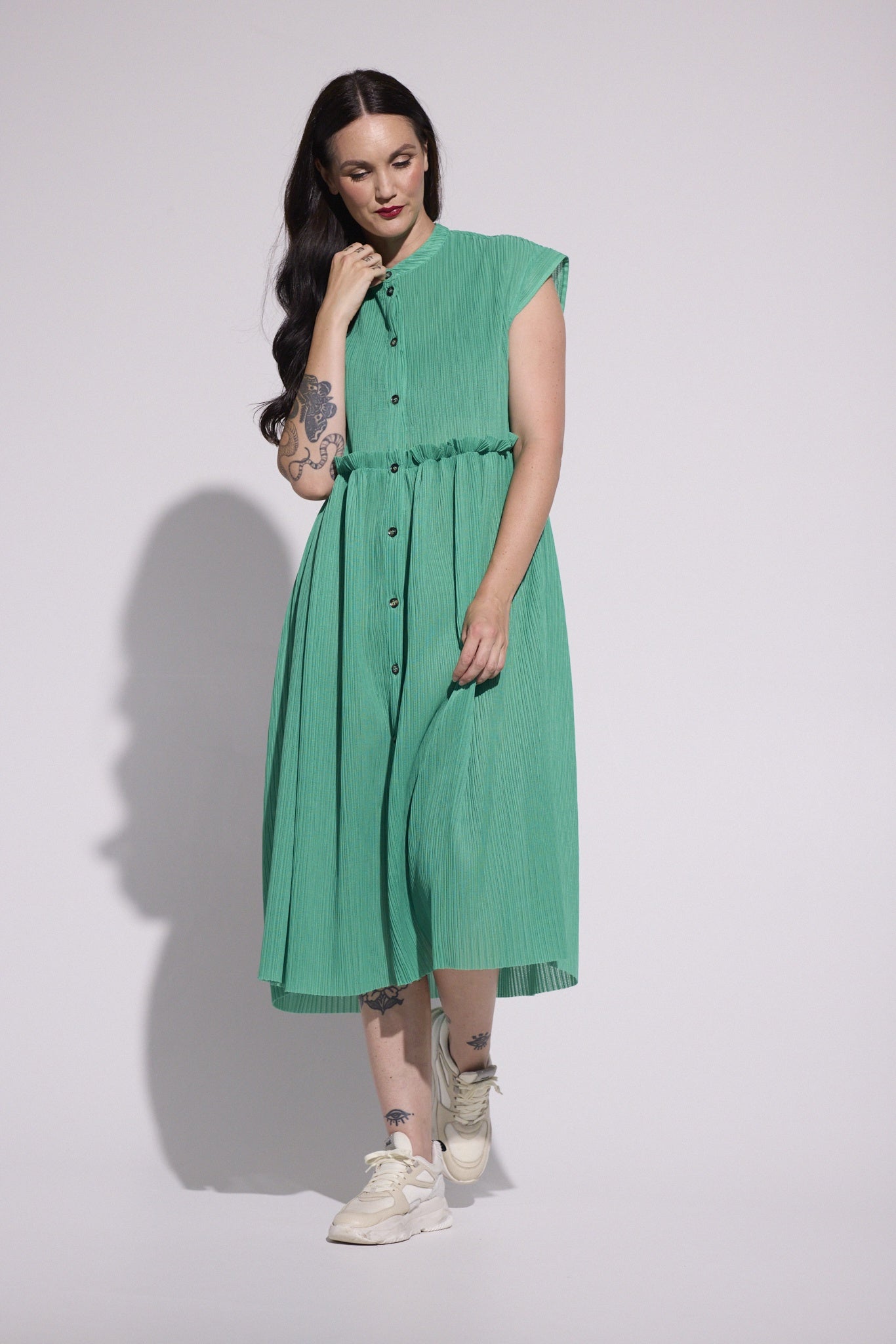 Style: Cut from a unique pre-pleated soft and lightweight cloth with stretch. A shirt styled over-dress, roomy and relaxed this gracious piece is a layering tool with texture and elegance.