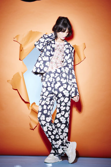 Style: Pyjama styled button down shirt with flattened collar, breast pocket and piping details. Fabric: Cotton Lurex with Satin Piping Fit: Relaxed...