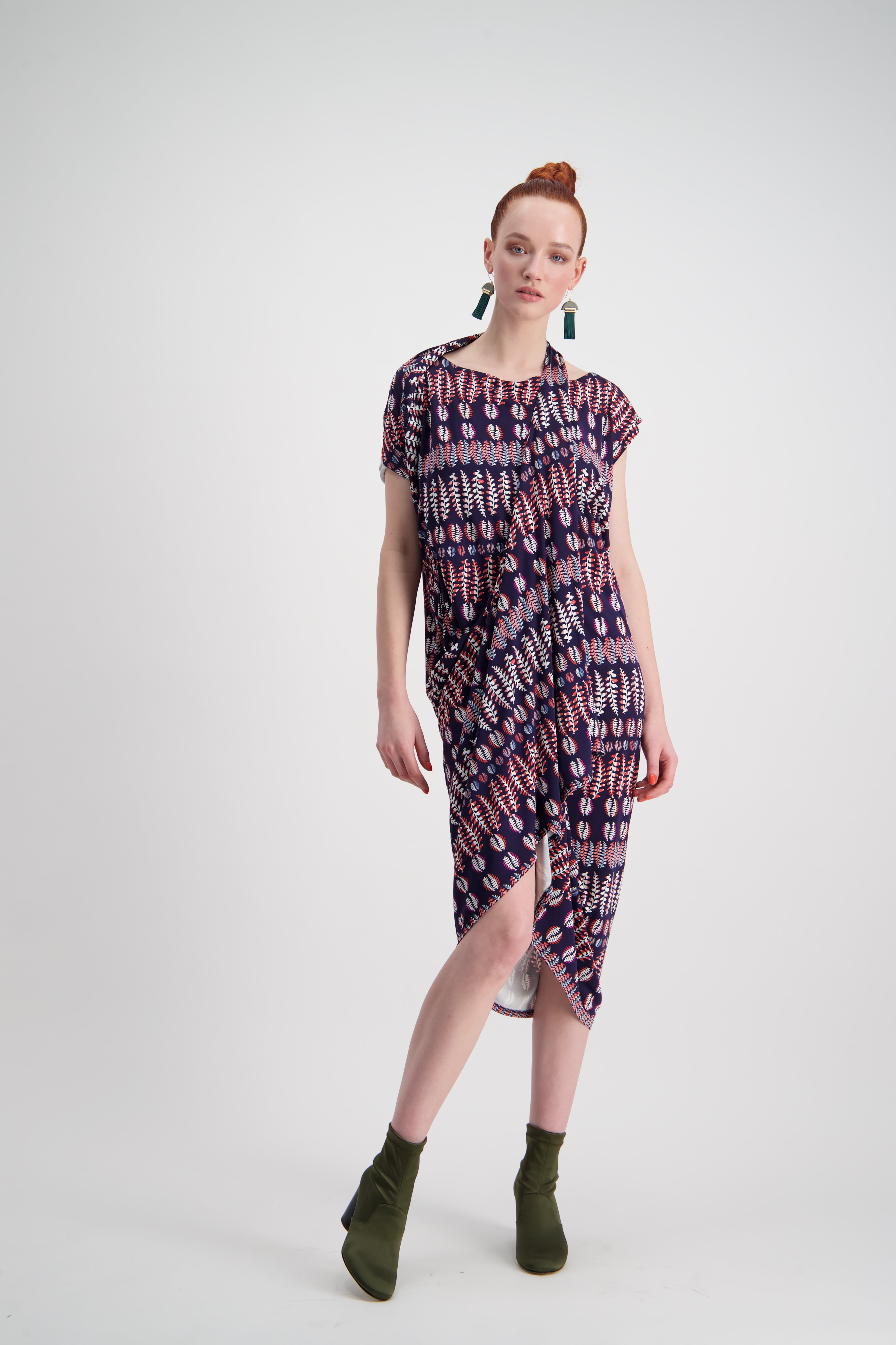 WORLD 4378 Travolta Dress Navy Fern