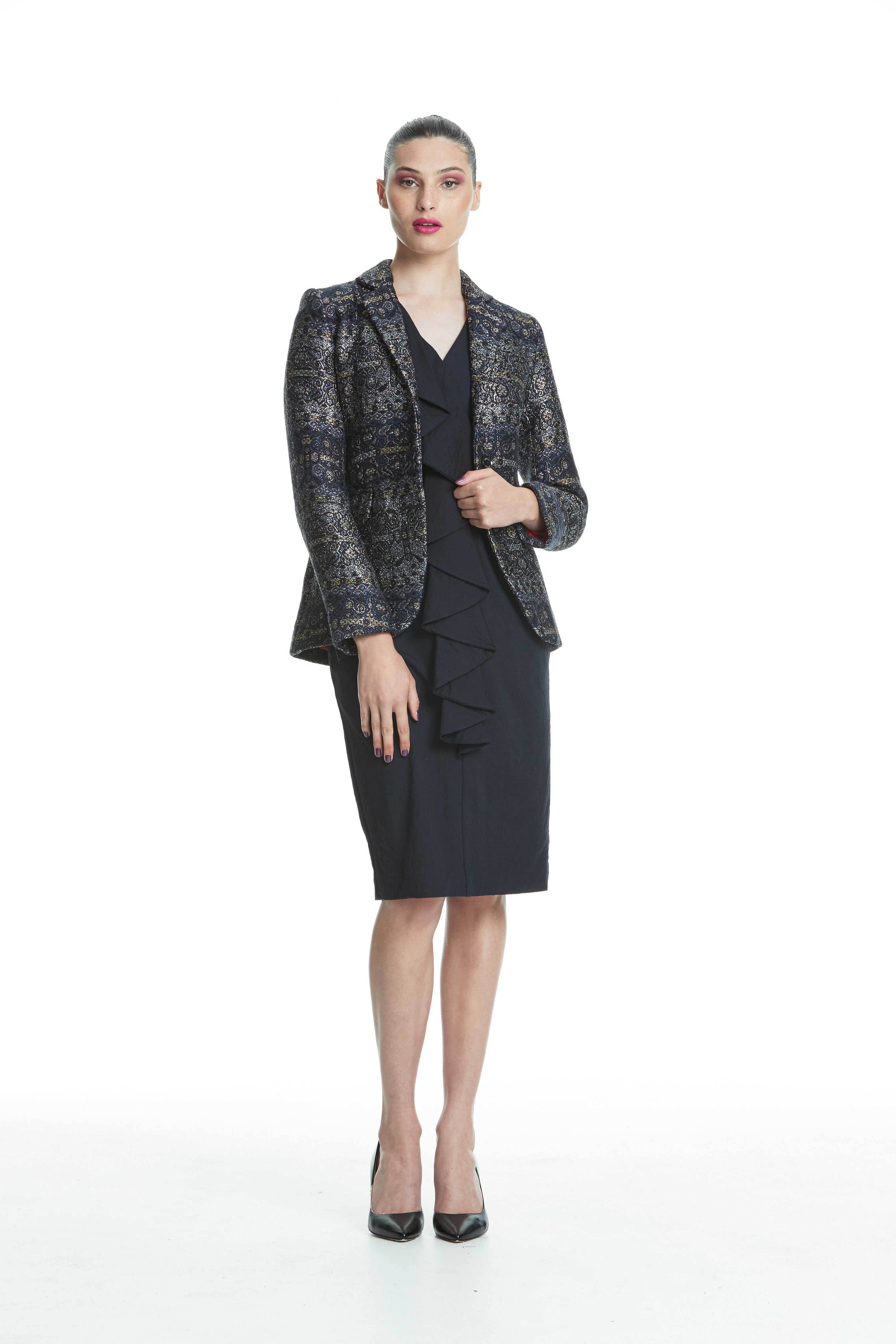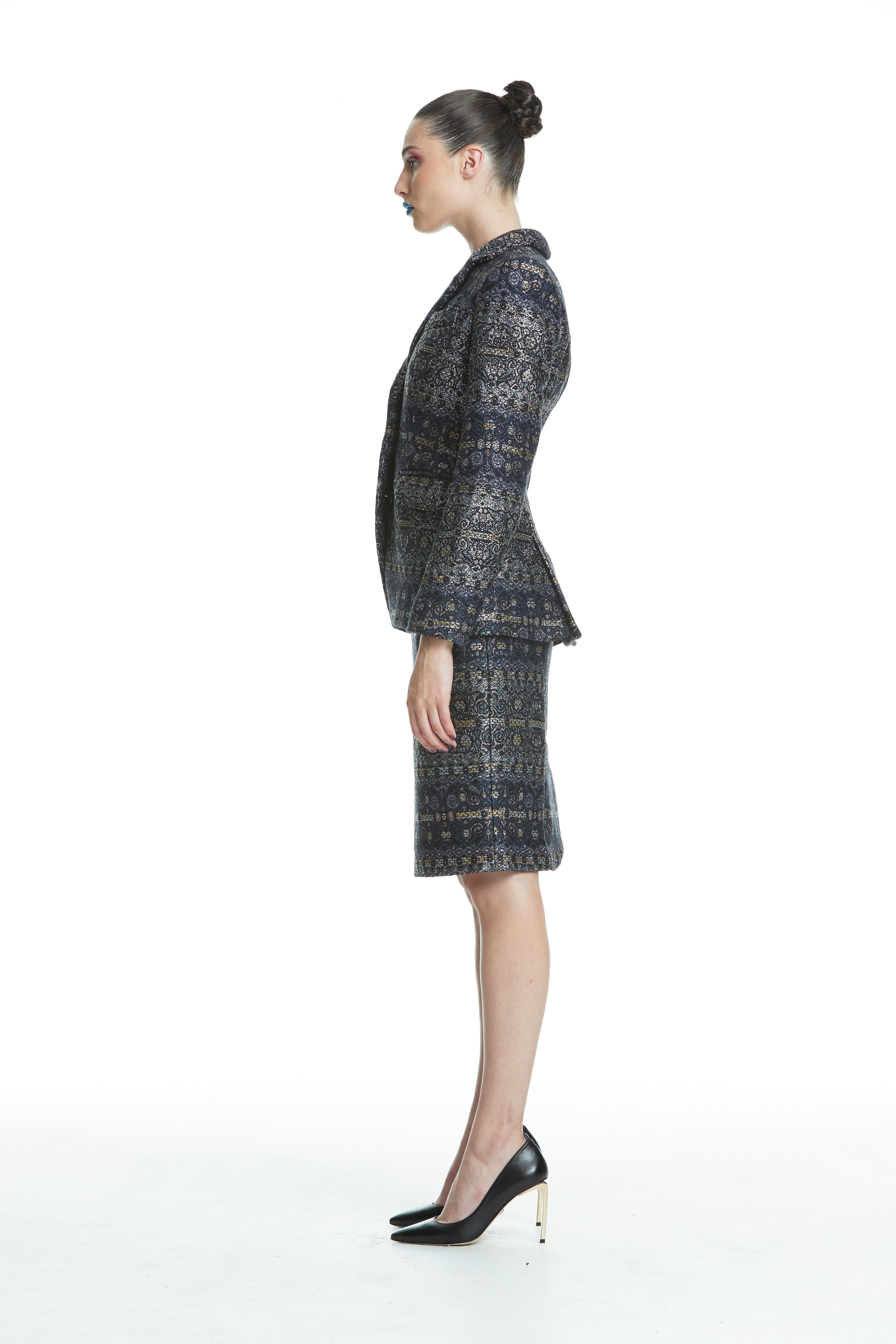 A classic shaped 2 button, single breasted, double vent blazer cut from the most elegant suiting, a textured and emboldened lurex, wool weave, strengthened by nylon. This is a serious piece of sparkle and has the attitude to take you to the top. Suit up with the Cool Blazer and power through the other power suits!