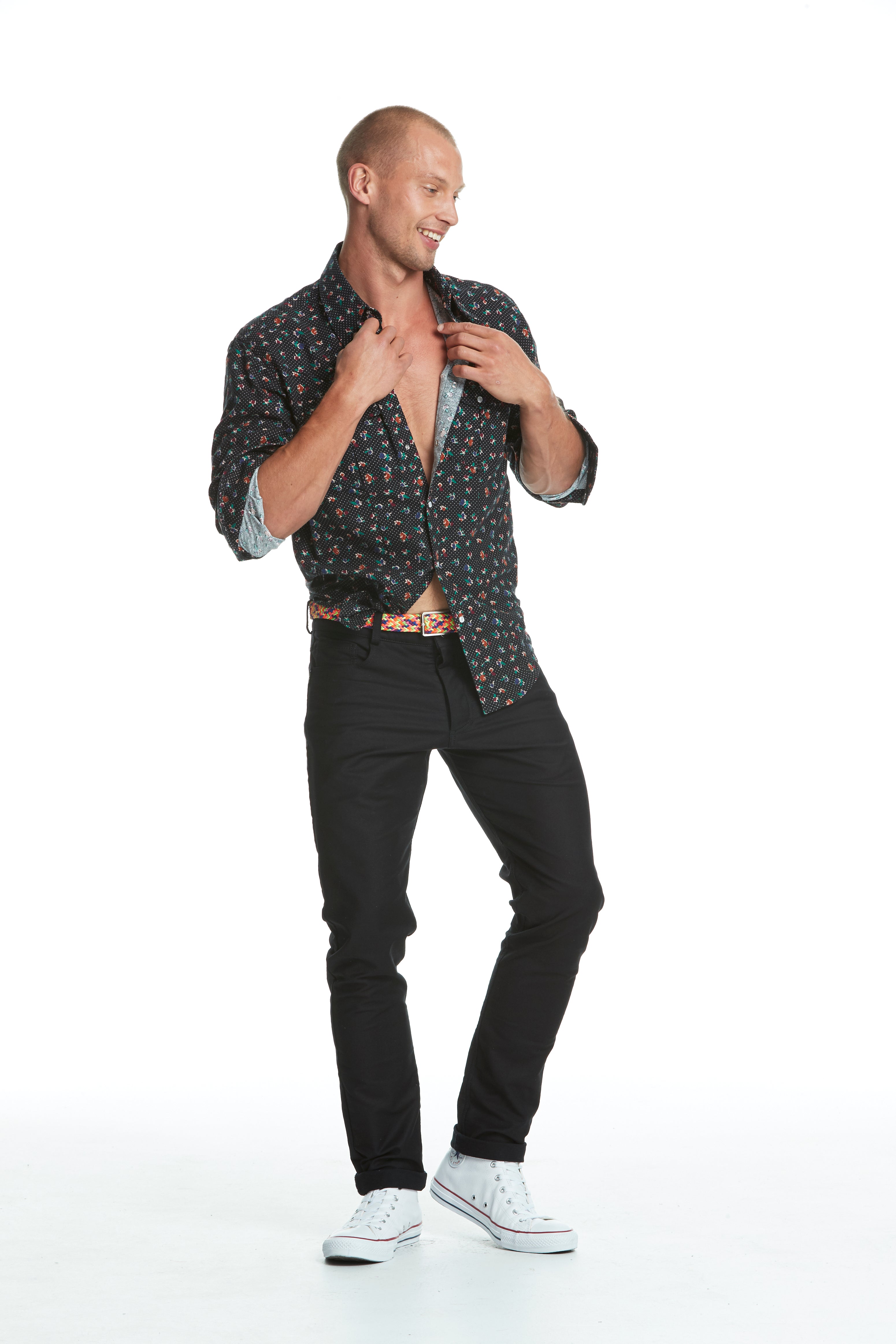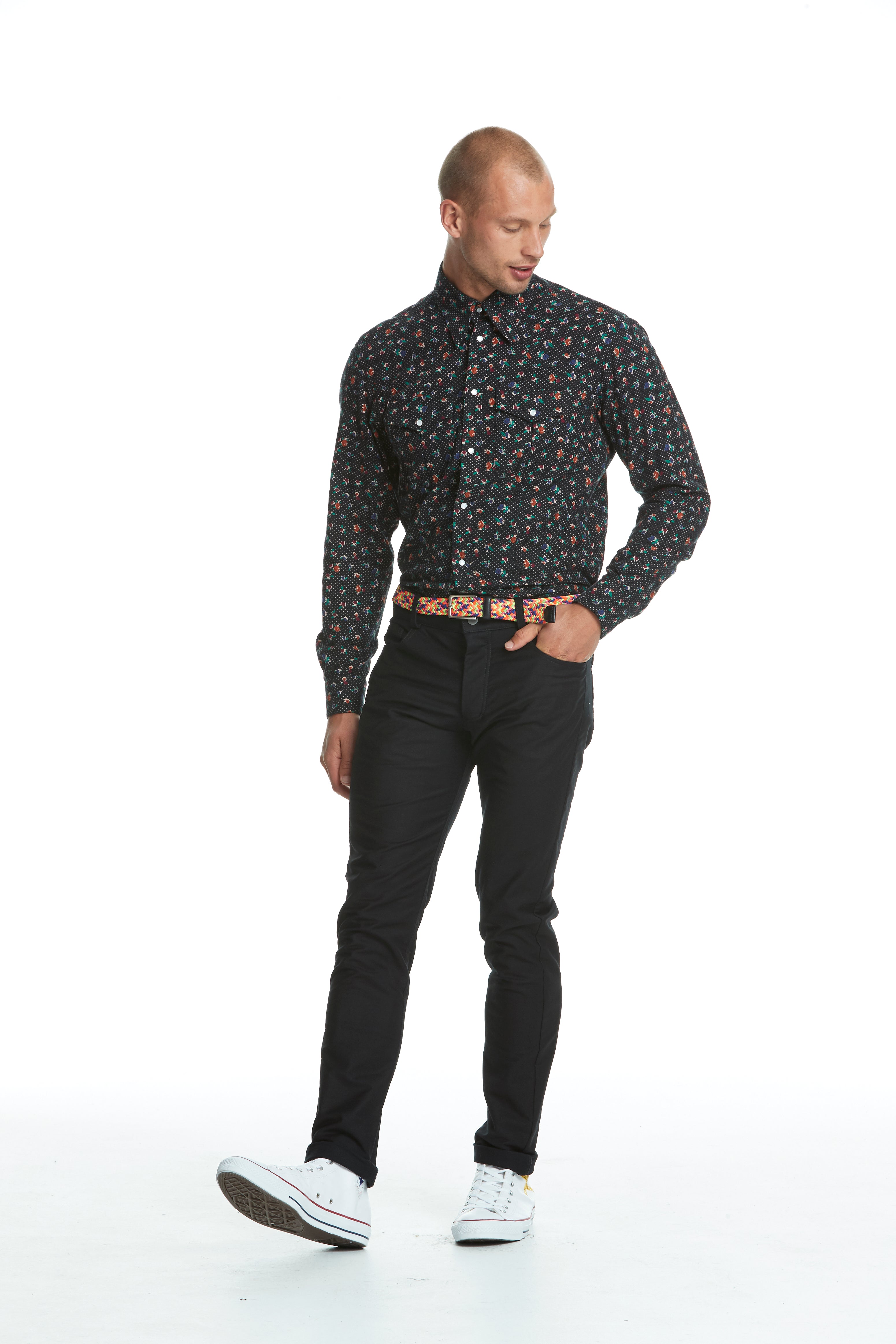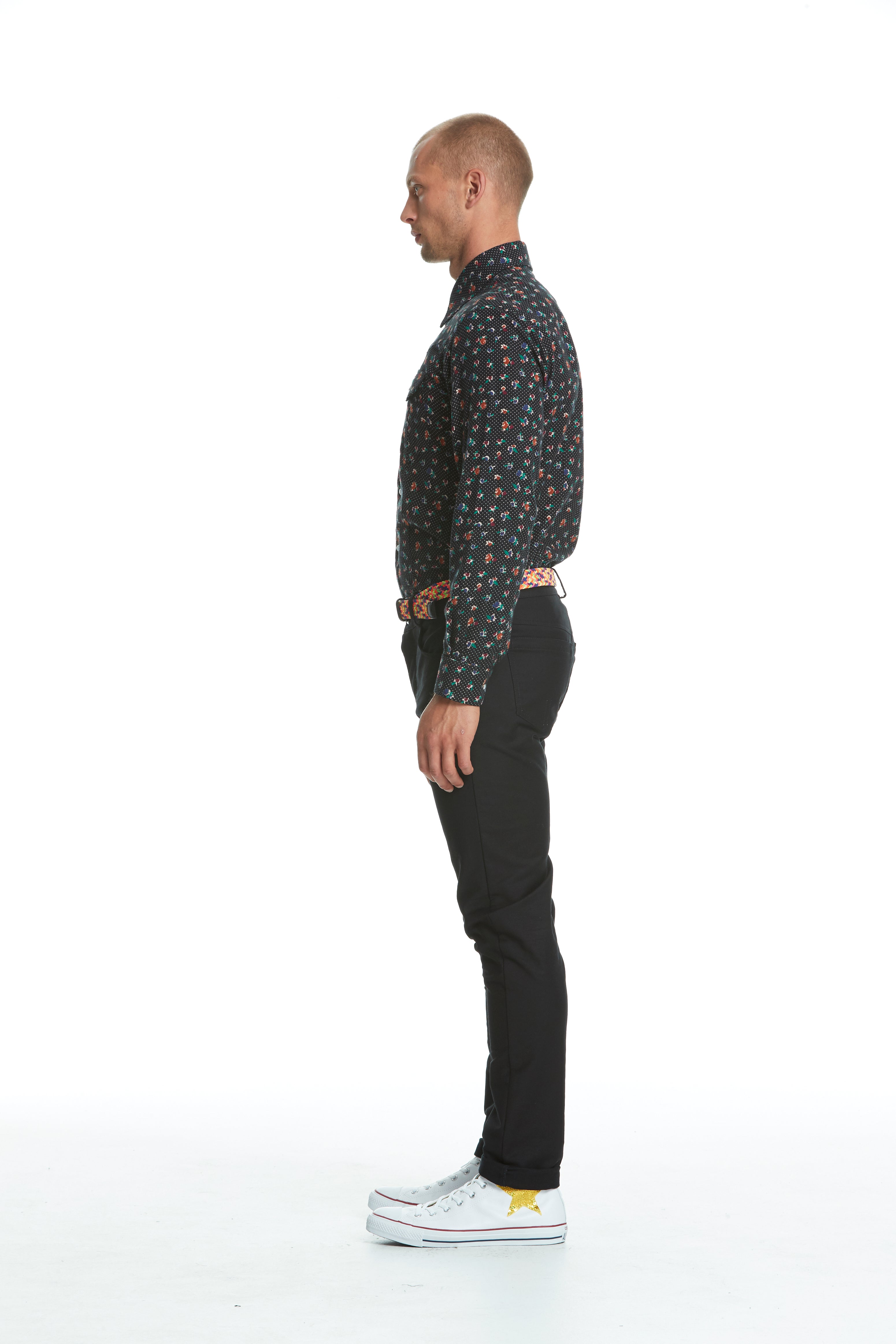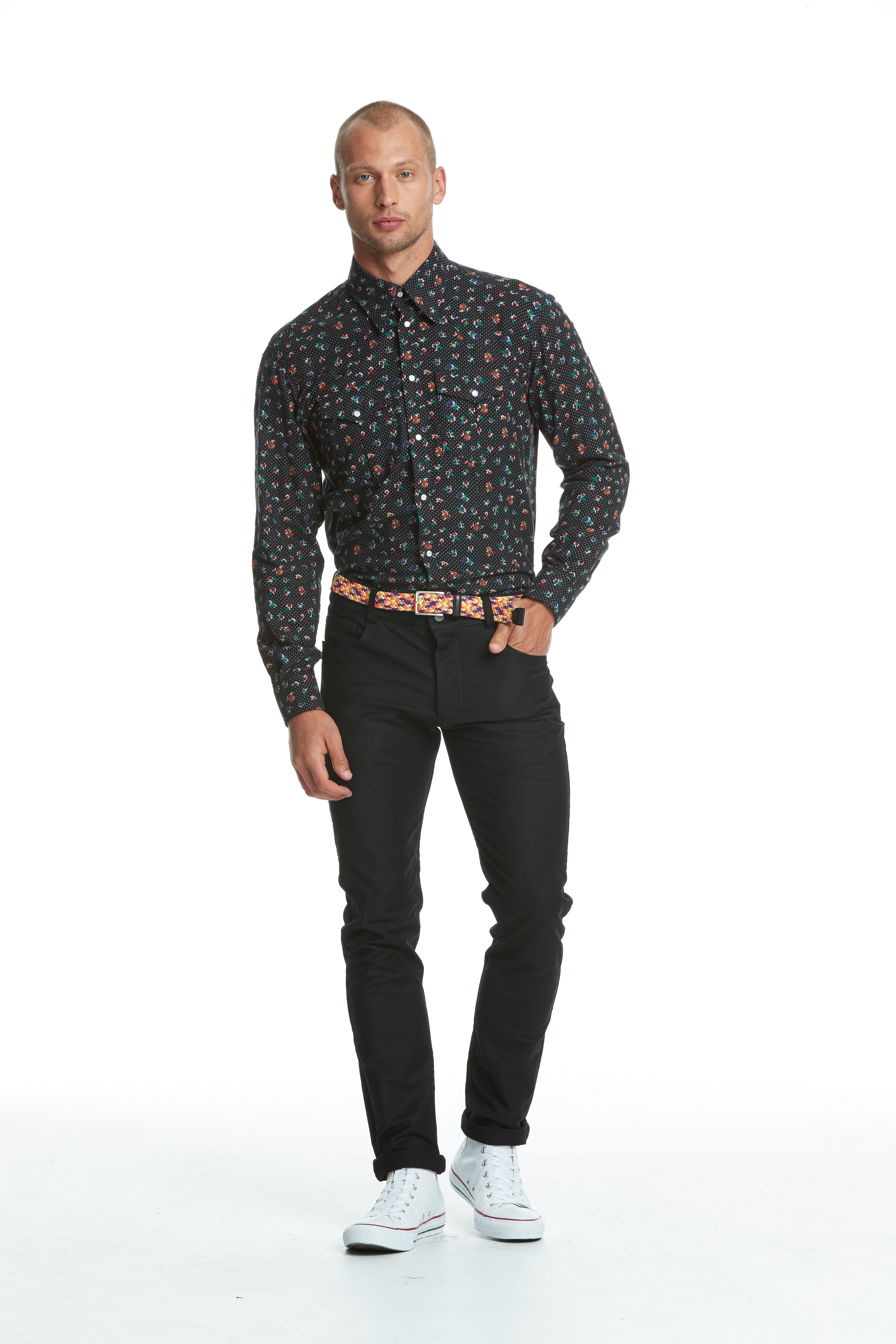 This cowboy styled cotton dress shirt in a peached finish miniature floral print is the perfect foil to being too formal or too casual - wear open with a T underneath and jeans or dress up into a suit - choice is yours!