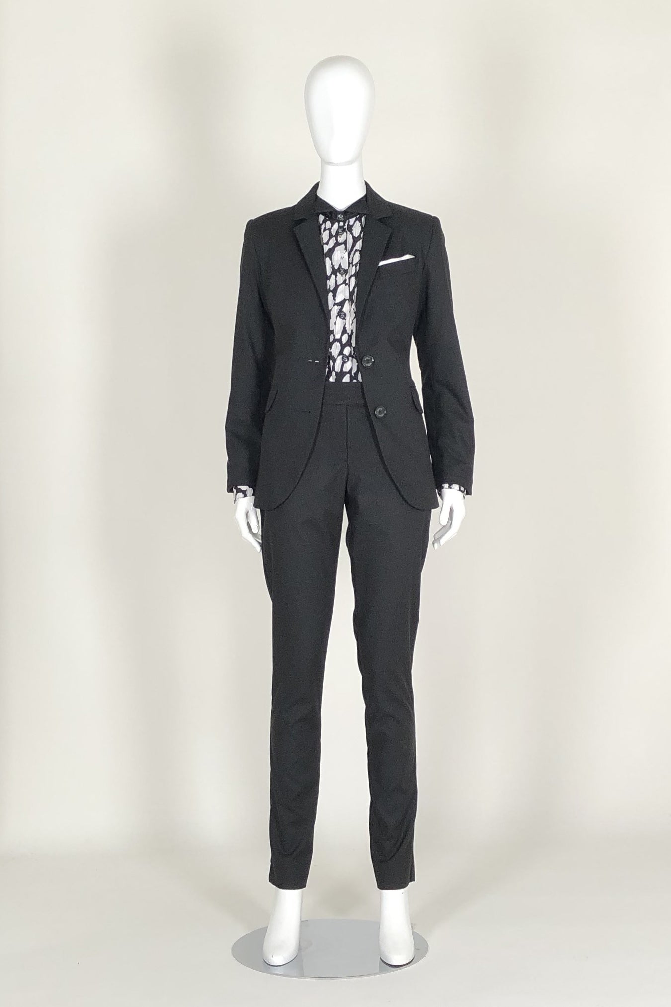 Style: Shaped and structured two button suit blazer. Single breasted wit notch lapels, a double vent and welt flap pockets, cut from a floating trans-seasonal suiting.