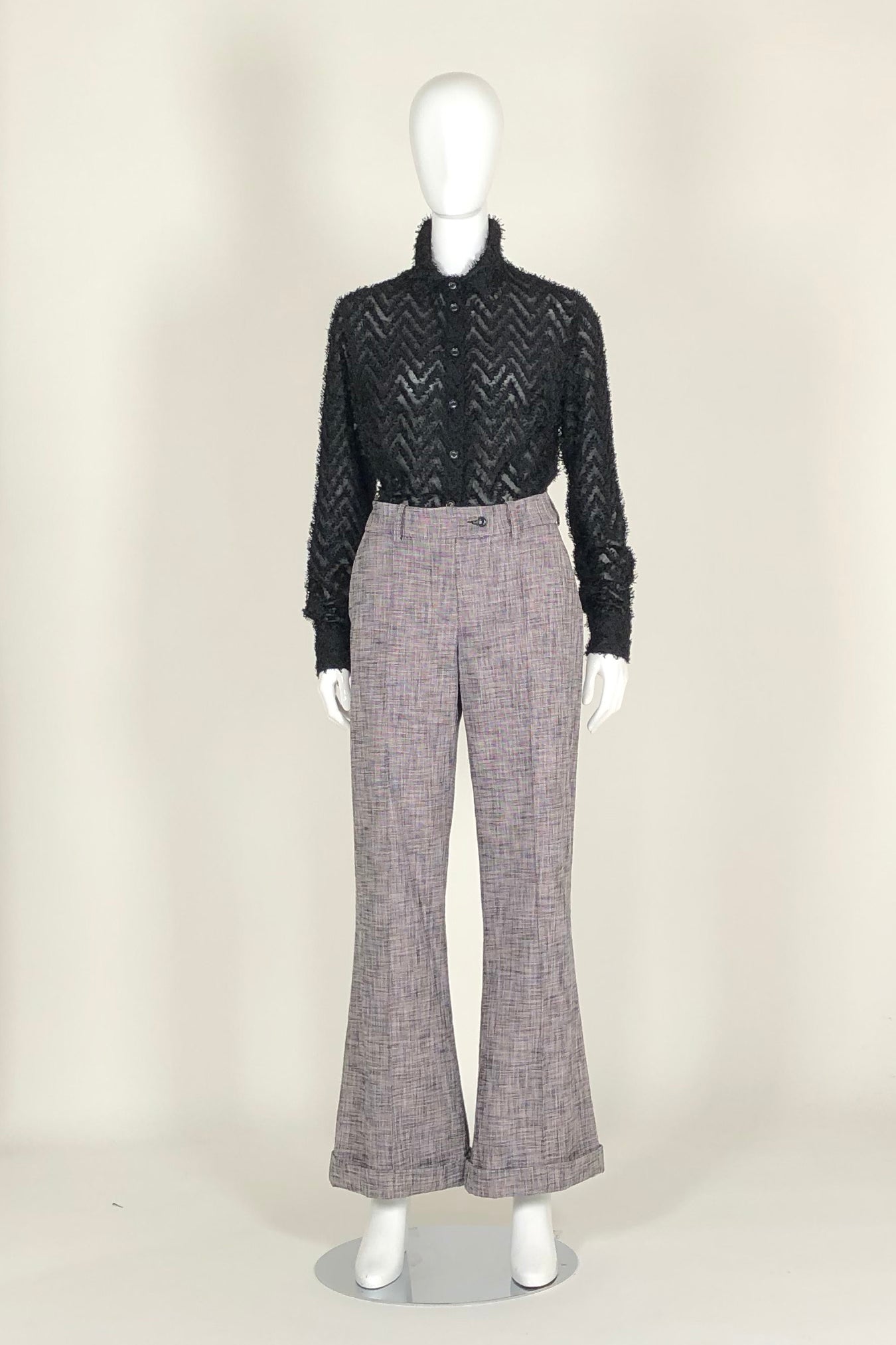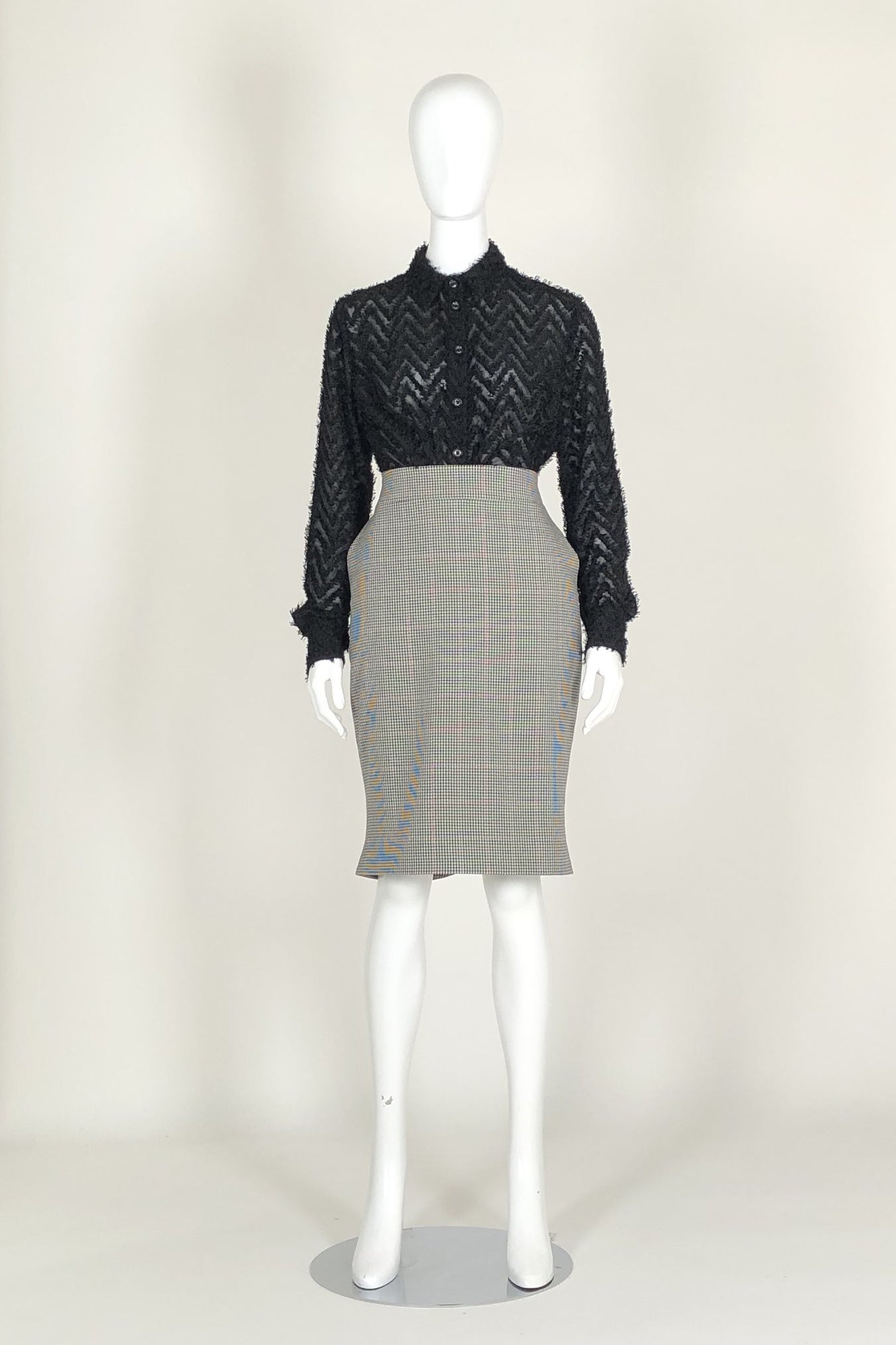 Style: Classic dress shirt, tailored with front and back darts in a textural zig-zag burnout