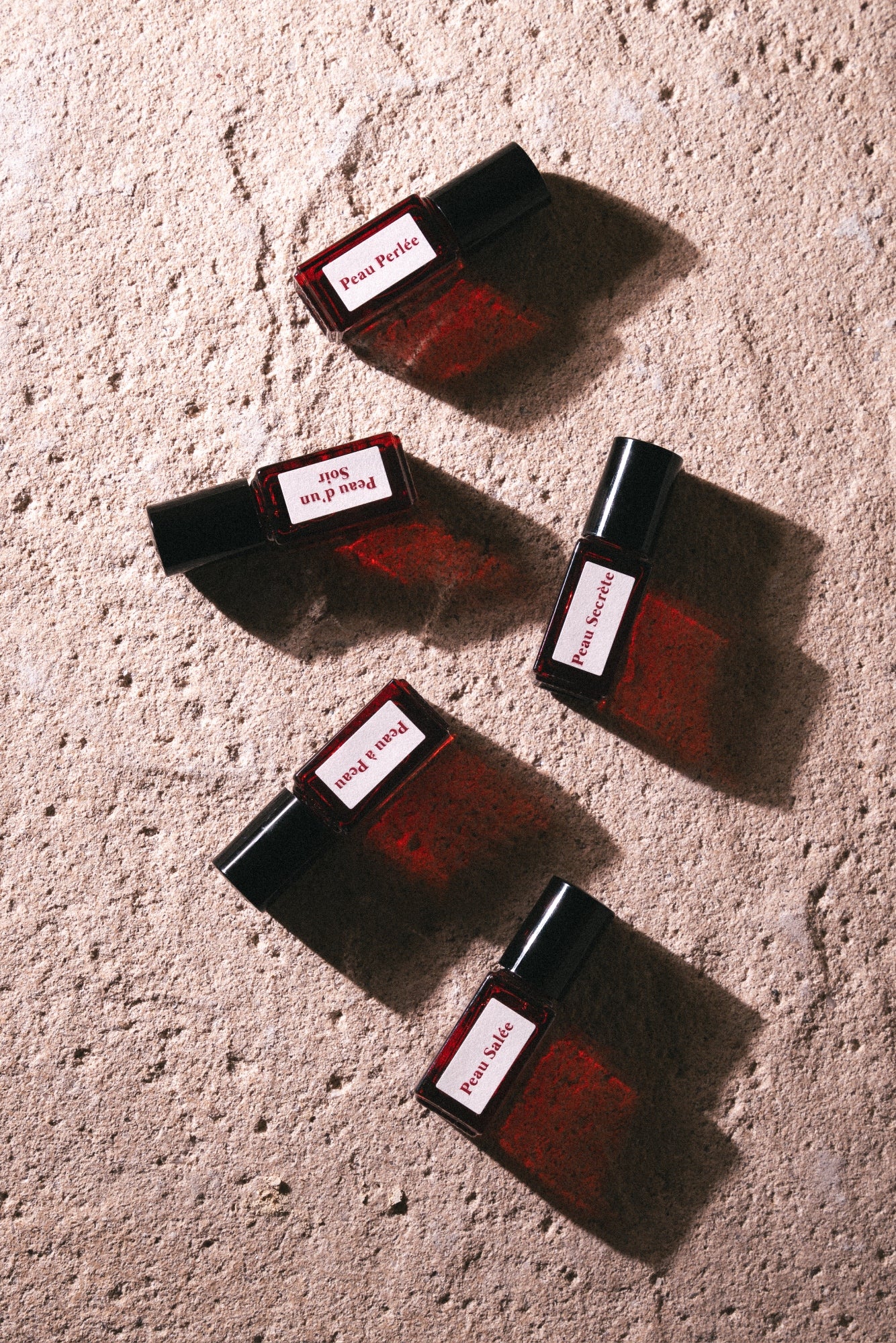 Perfume oils are applied directly to the skin, on pulse points, also known as hot spots. So, we advise you to roll the ball of your bottle on the inside of your wrists, the hollow of your elbows, in your neck, behind your knees and anywhere you feel your heart beating. And our favourite tip, on the ends of the hair!