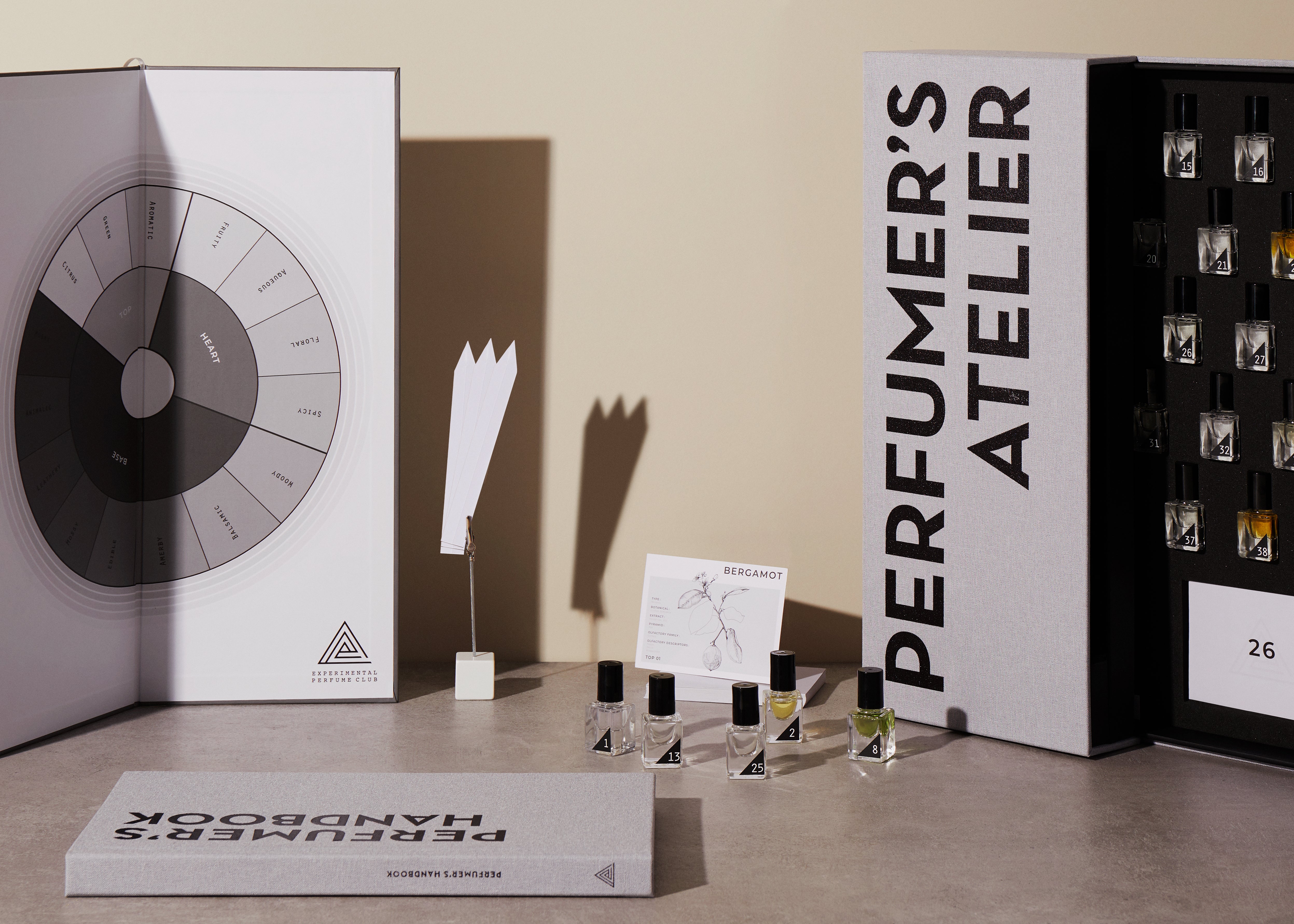 The set also includes a fragrance wheel and a comprehensive 160-page perfumer’s handbook which brings together the skill and knowledge of a team of trained perfumers including EPC’s founder Emmanuelle Moeglin.