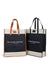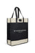 100% heavy-duty black and off-white jute canvas with a black leather handle (and black leather trim)