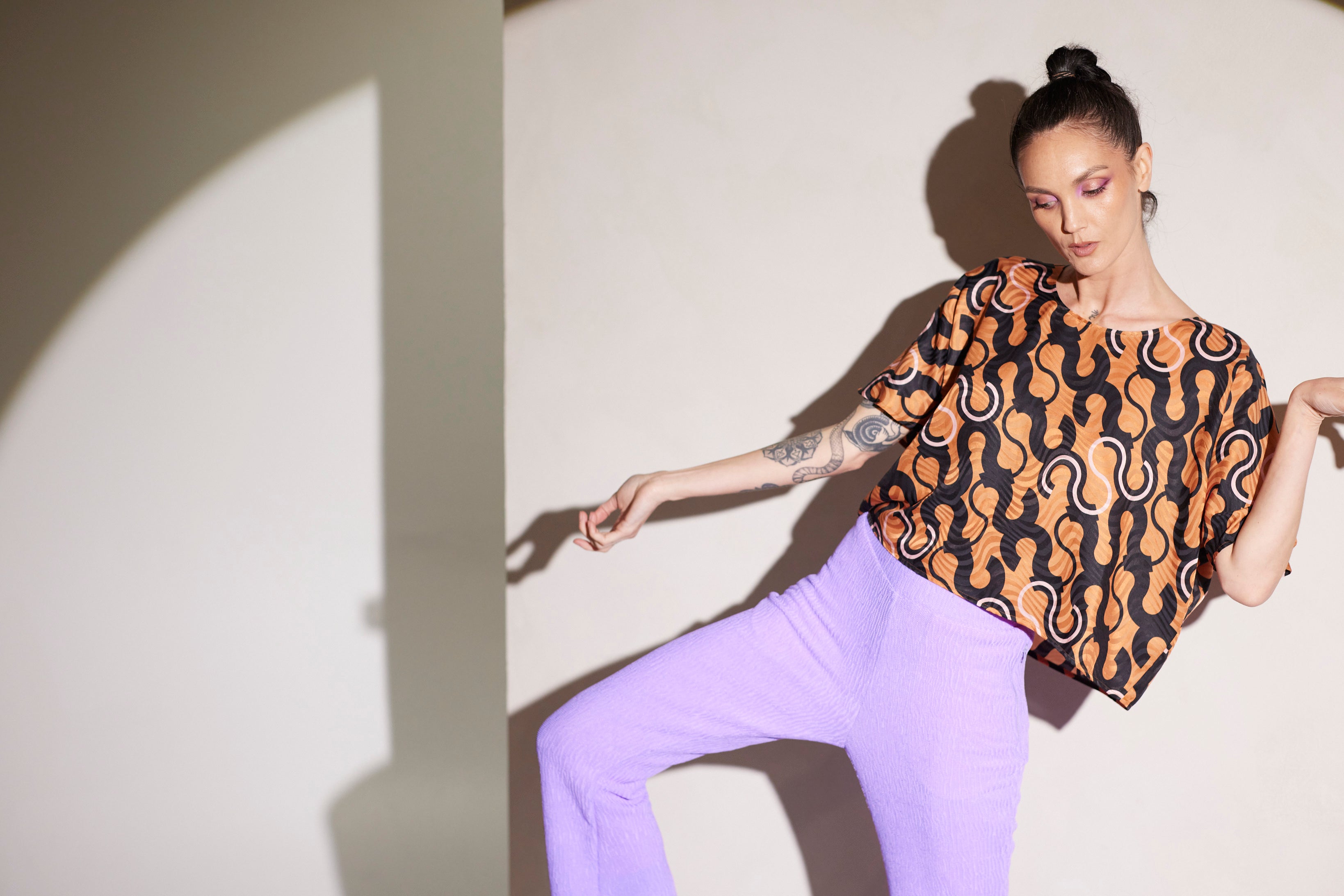 WORLD 4829a Romance Top Orange Pink Black Deco