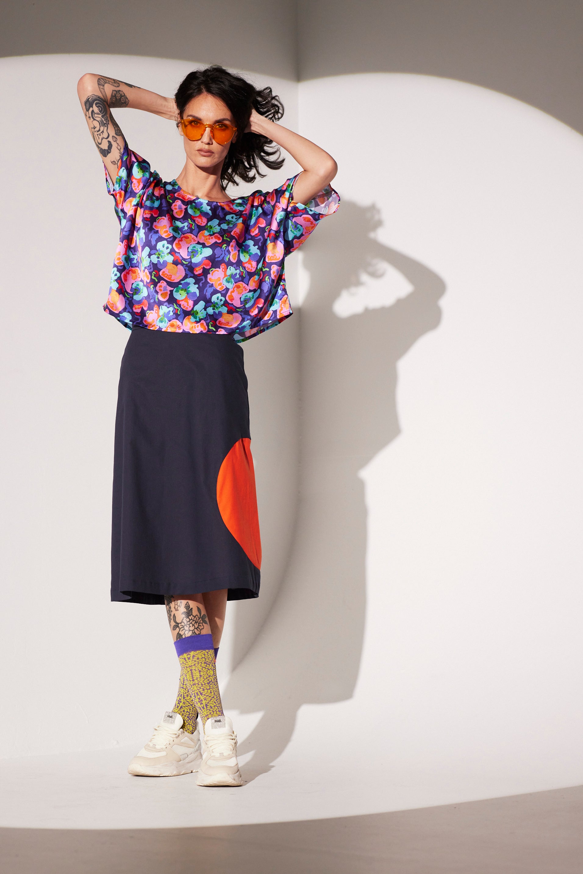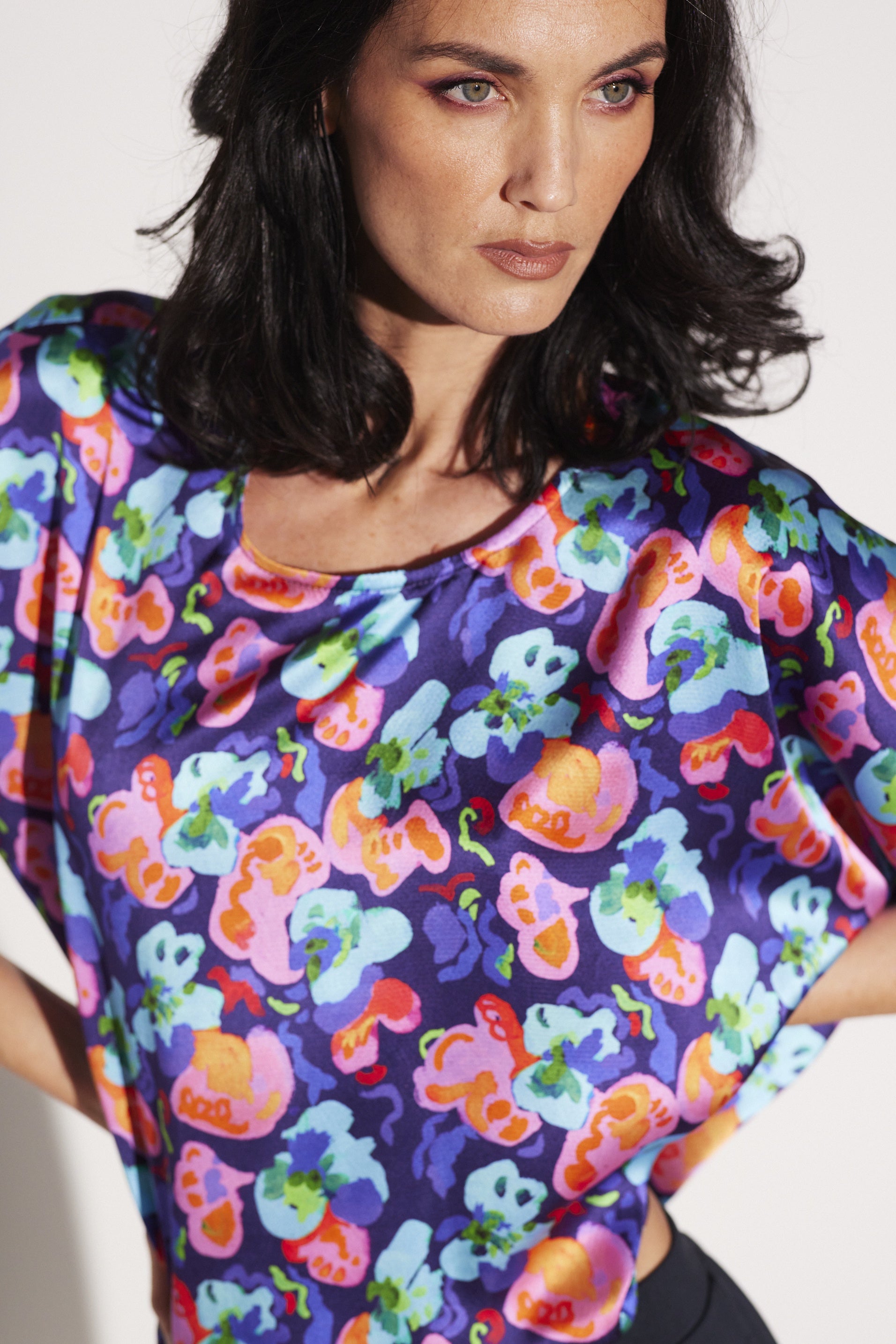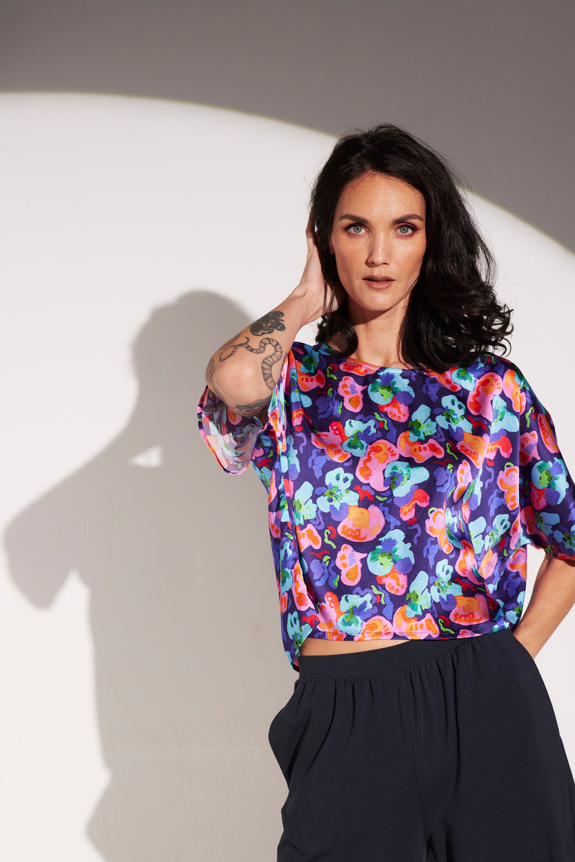 Style: Relaxed fit, 2 piece crew neck t-shirt slightly shortened and in only two sizes as designed to wear loose and draping