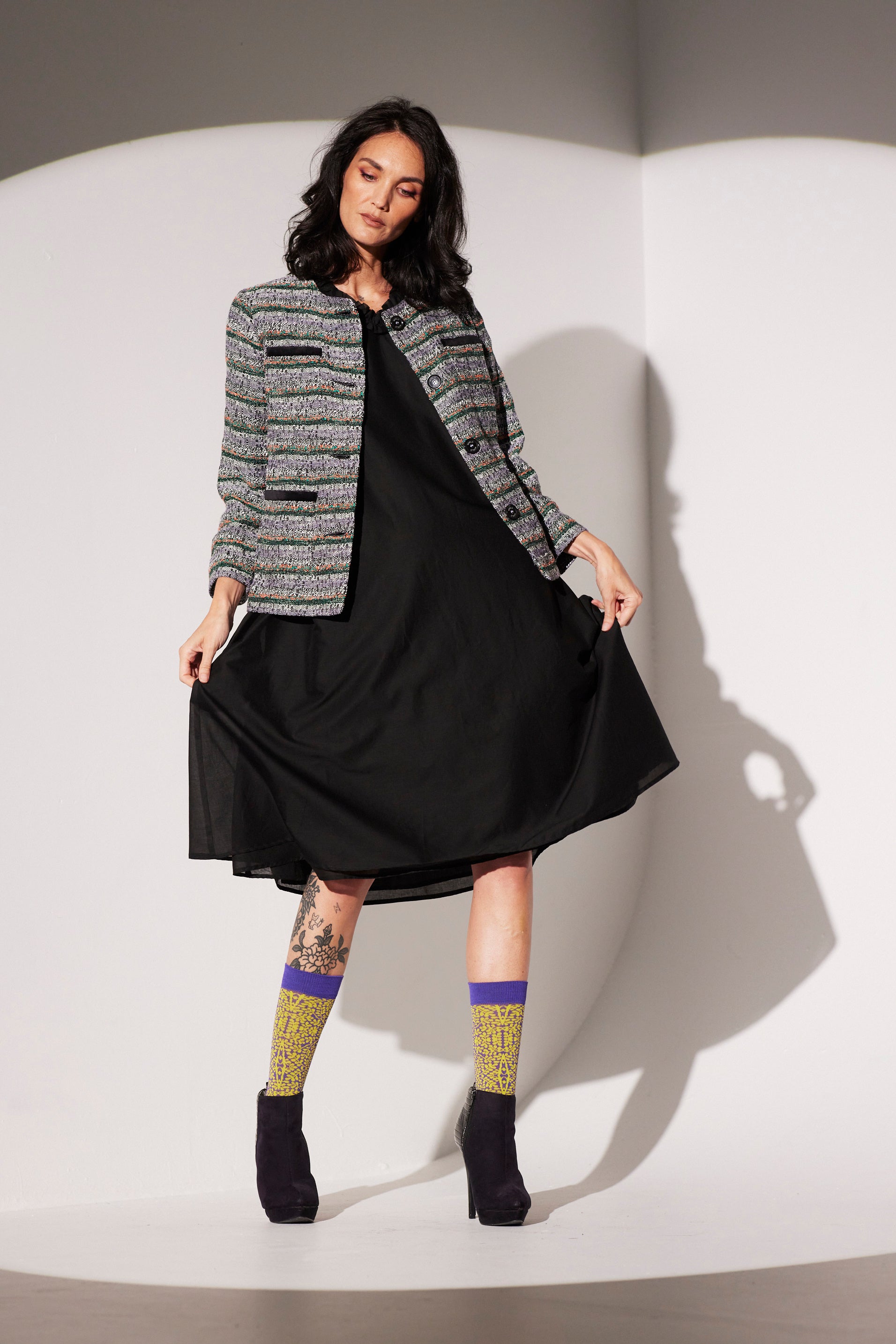 This garment has been designed and made in Auckland, New Zealand using fabrications and notions sourced internationally.