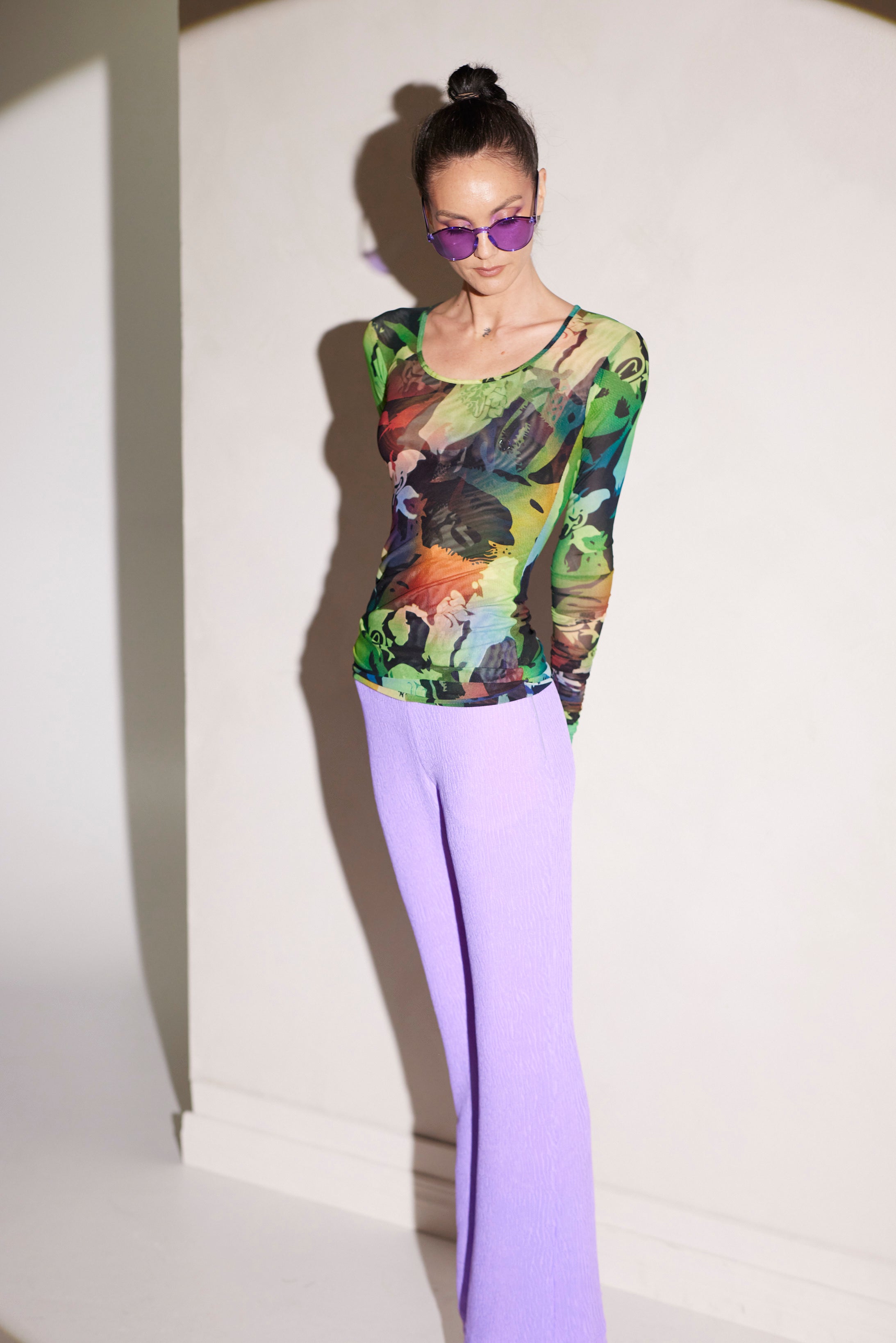 WORLD's Icon Stretch Long Sleeve Tulle Top.