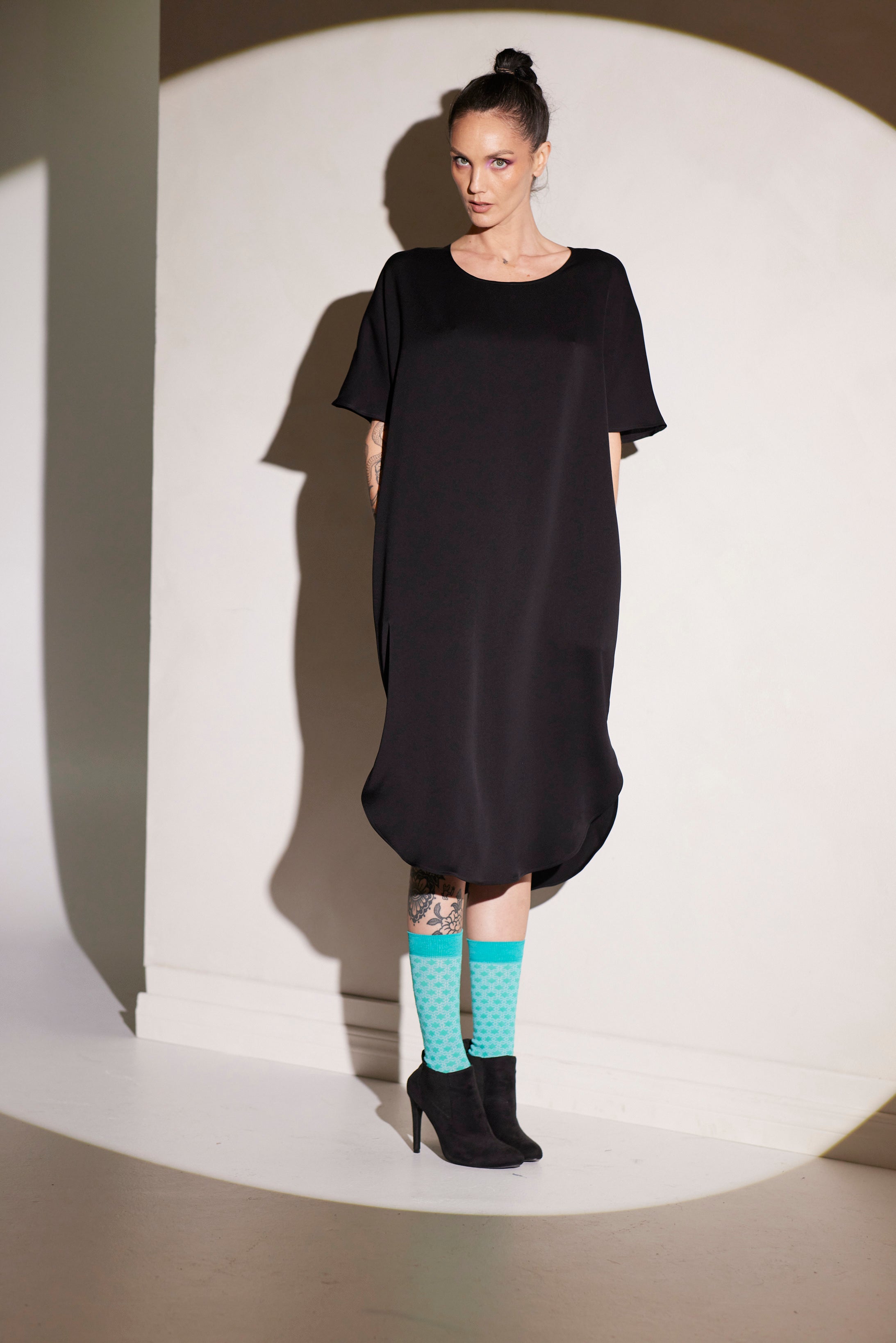 Style: Relaxed fit, crew neck long sleeve t-shirt slightly shortened and in only two sizes as designed to wear loose and draping