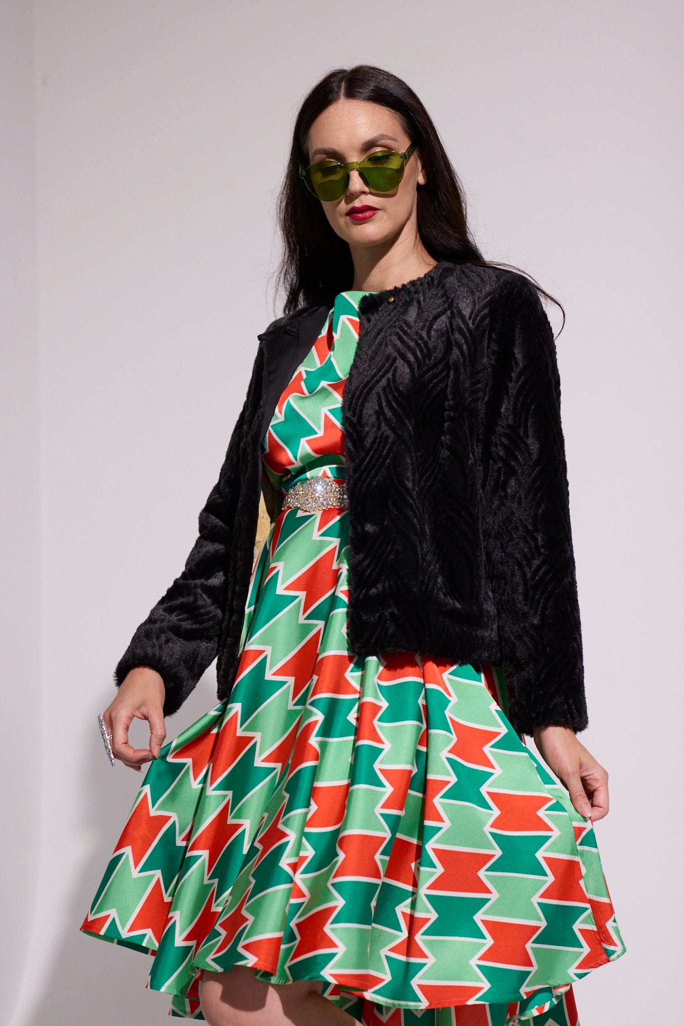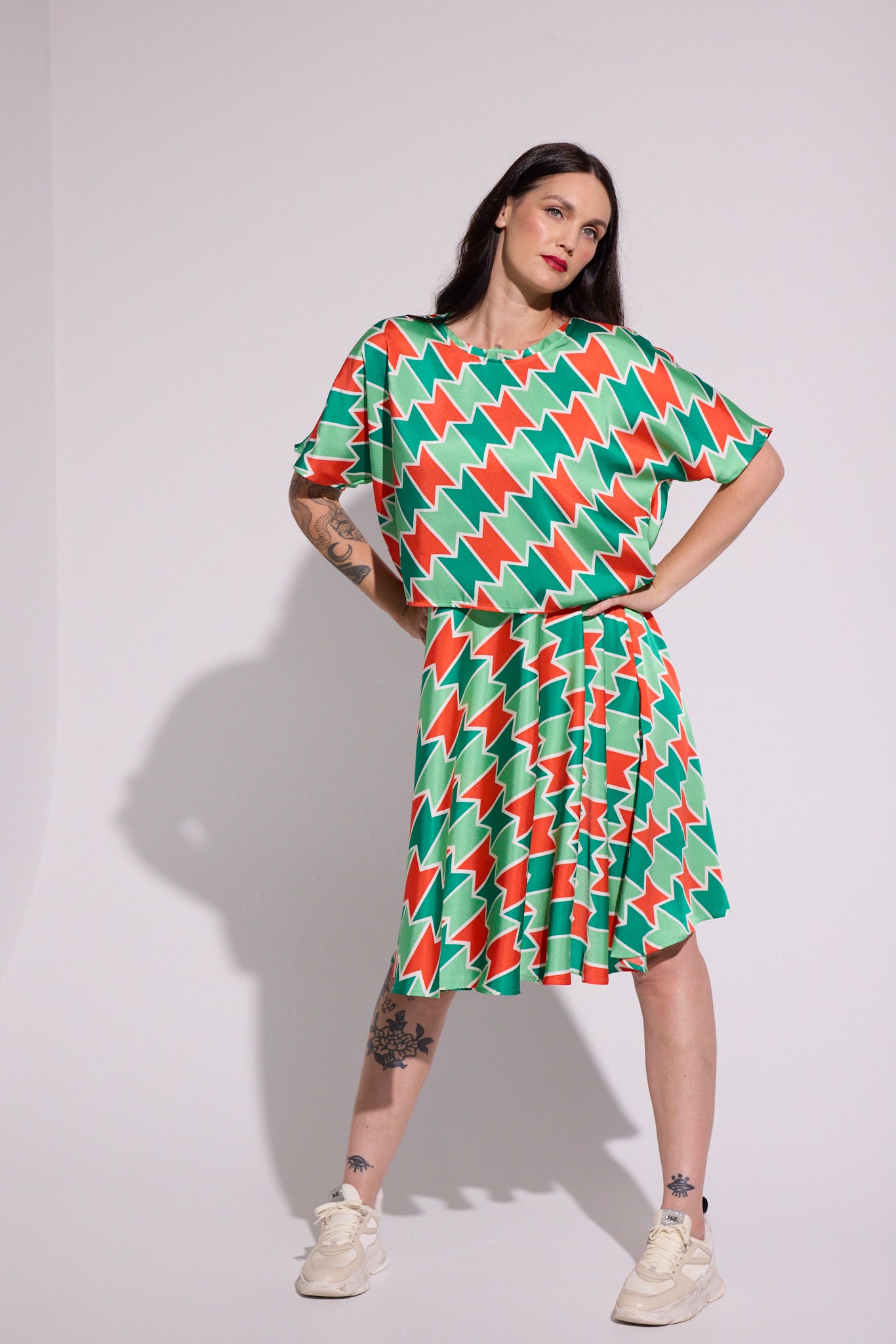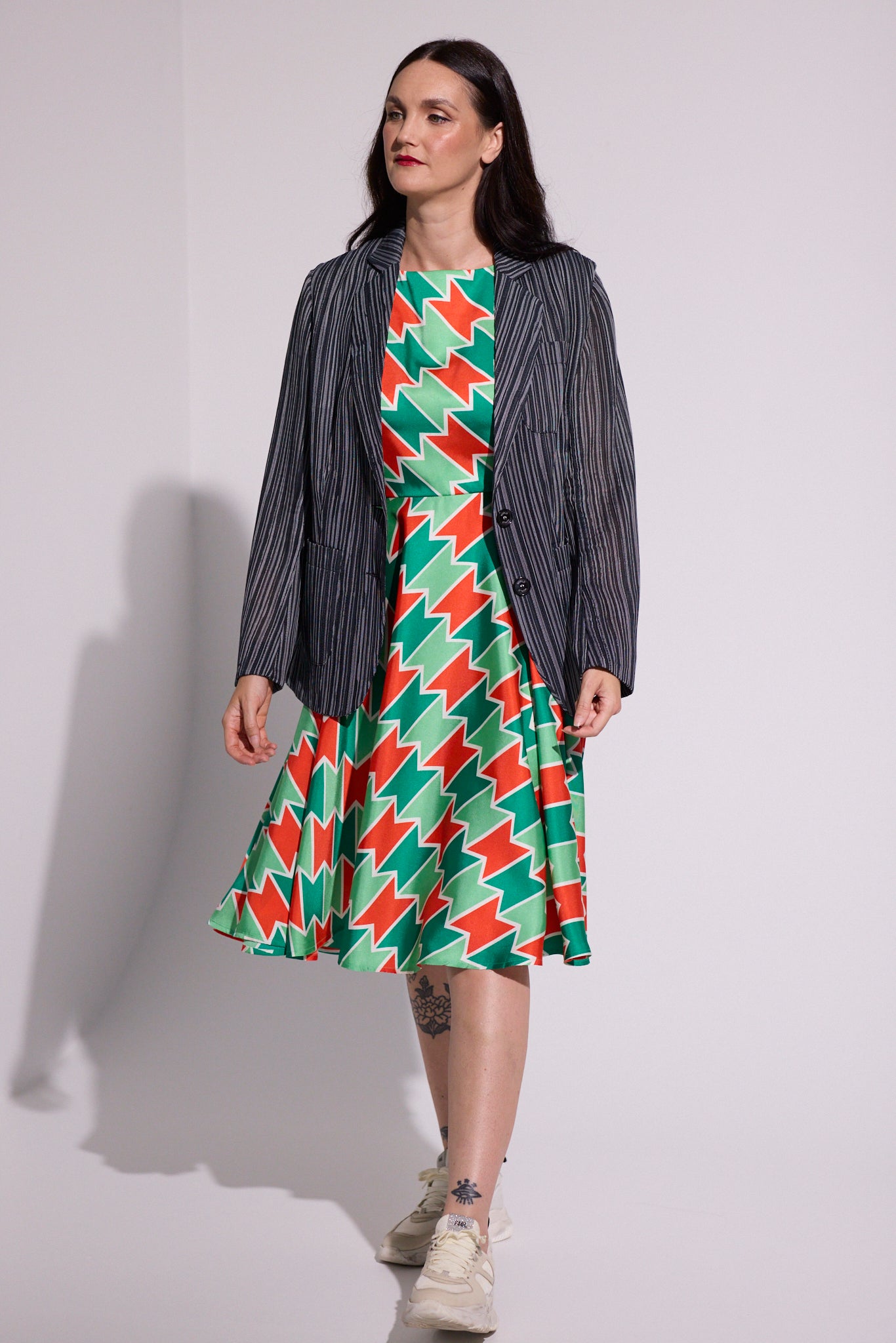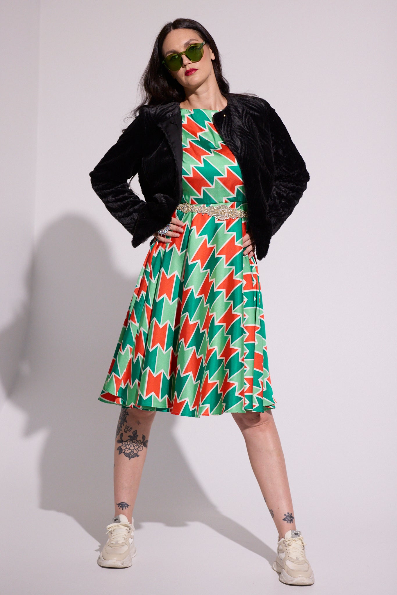 WORLD 5581 Zoroastrian Dress Green Red Zig Zag