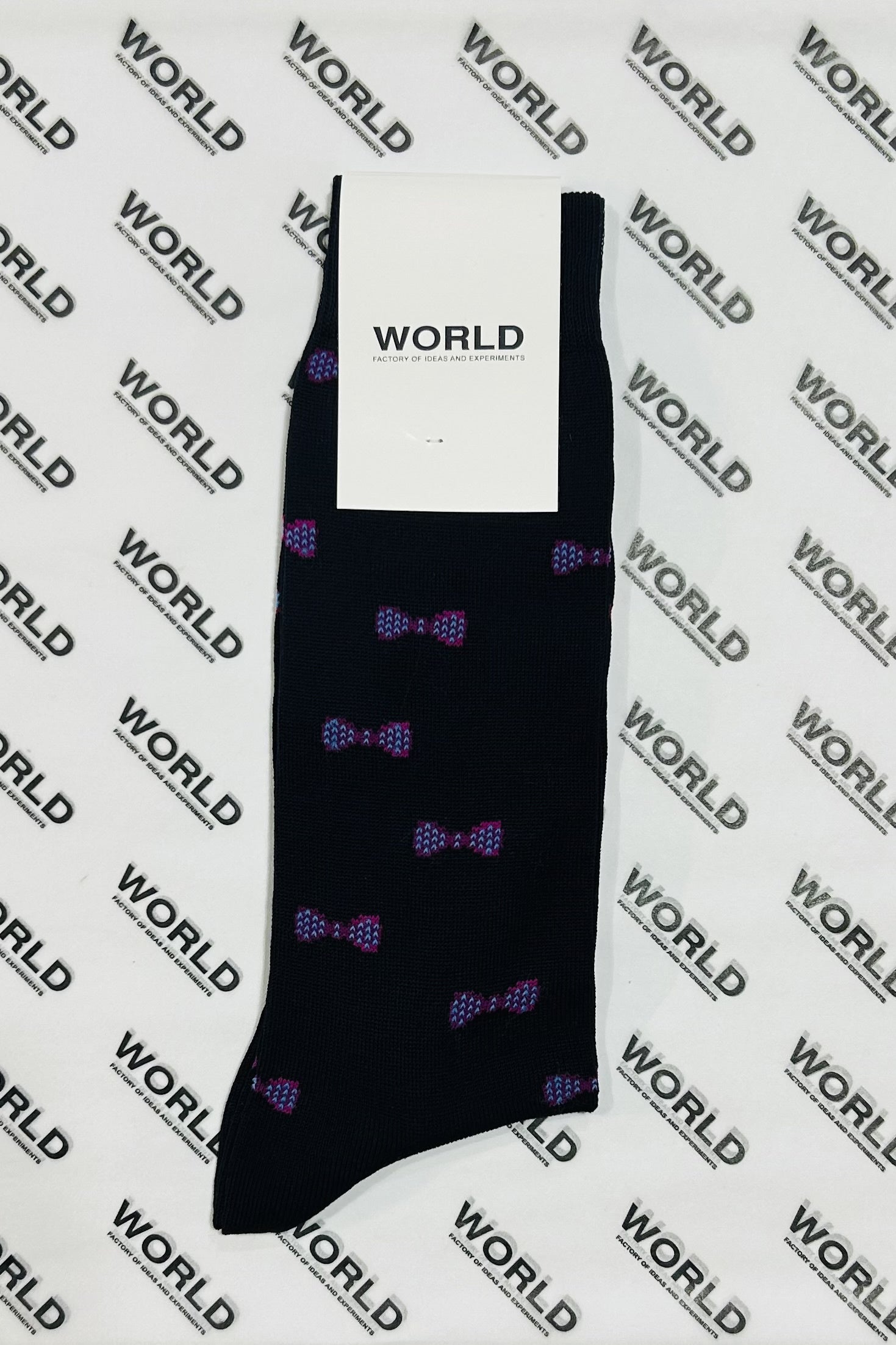 WORLD Italian Made Cotton Socks - Navy w/Pink Bows