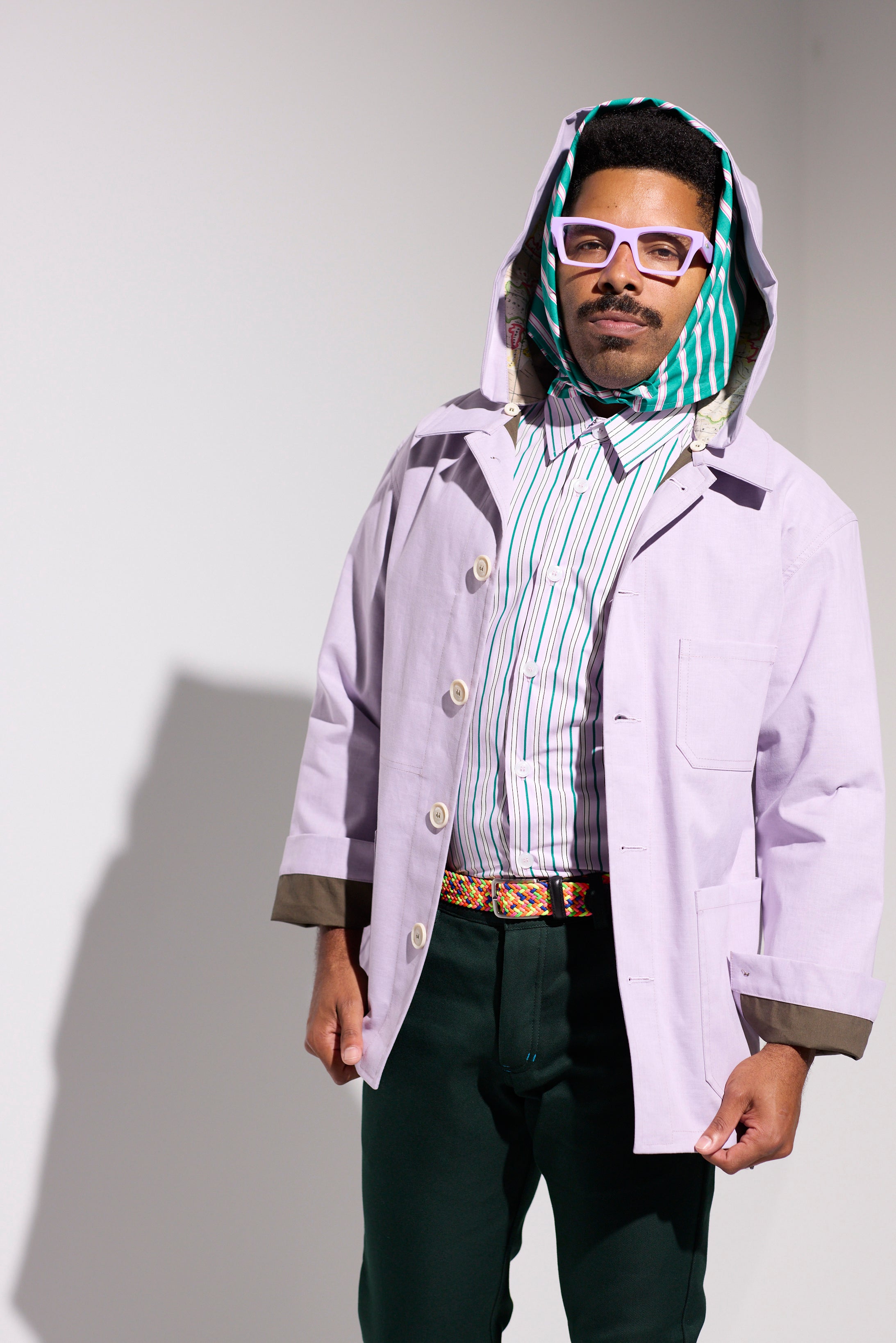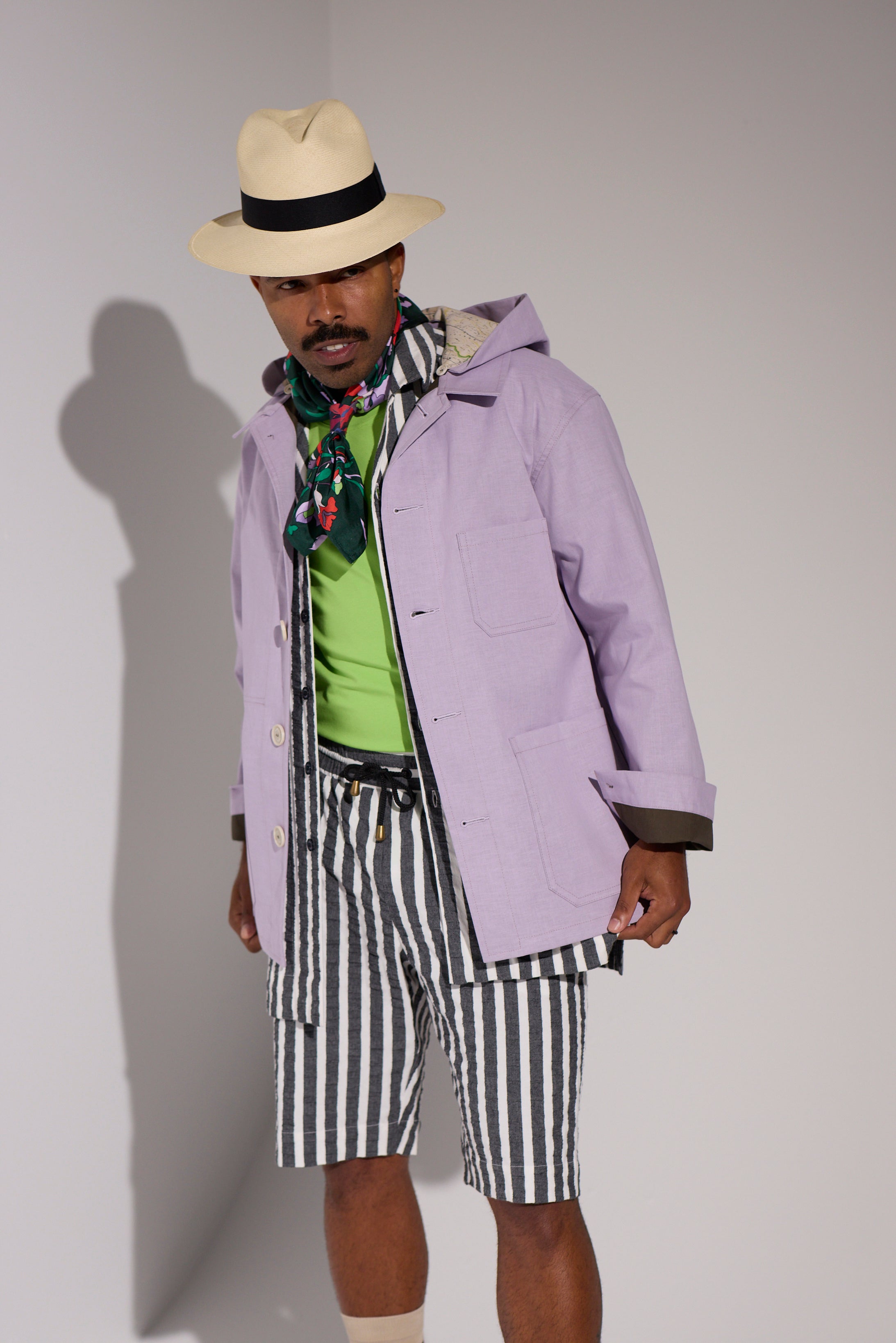 Style: Workman-styled Chore Jacket, relaxed and square in shape. With a detachable hood lined in the WORLD map canvas. A slightly oversized lightweight jacket that can be a unisex style. Perfect for an everyday run about relaxed style with an elegance and smartness when needed.